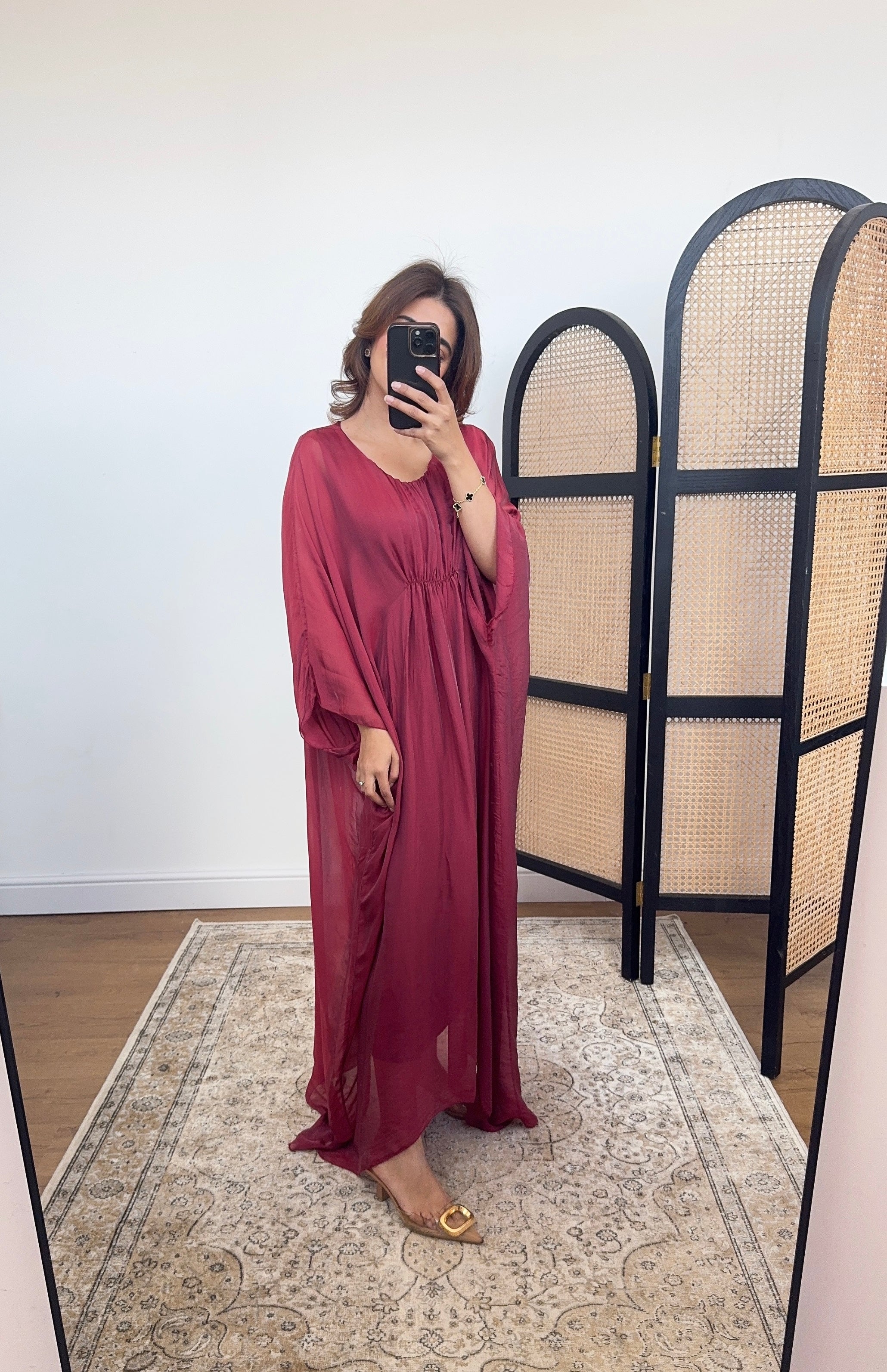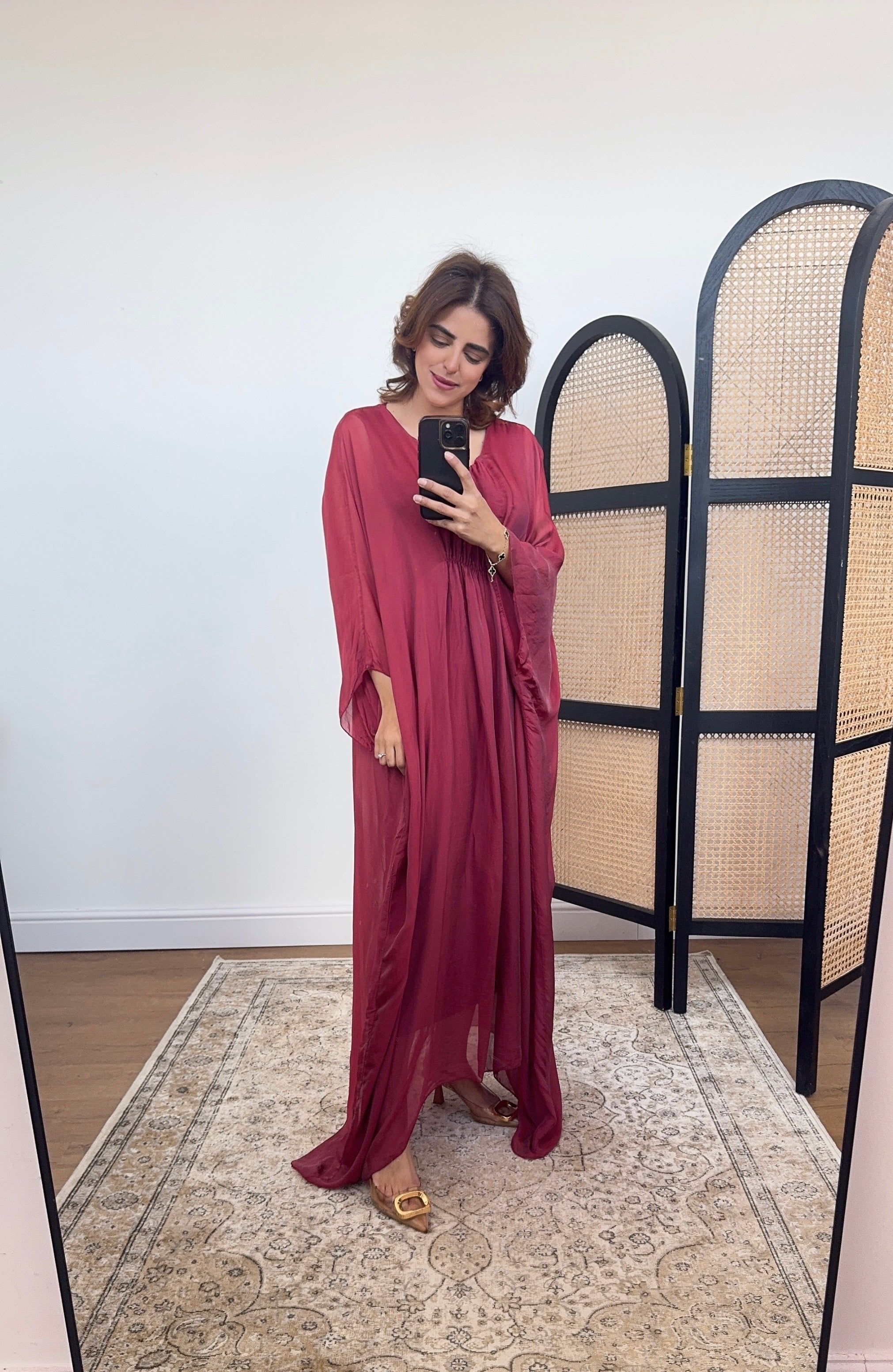 Beautiful flowy dress with a v neck and flare sleeves and knee length lining.