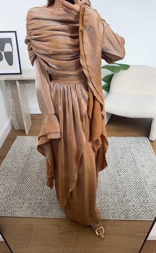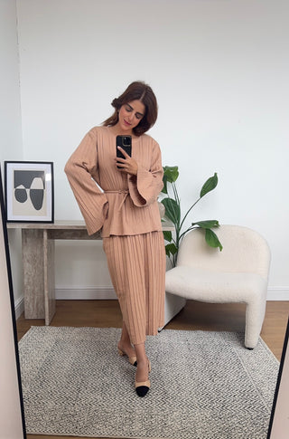 Camel knit skirt coord with a belt- hara