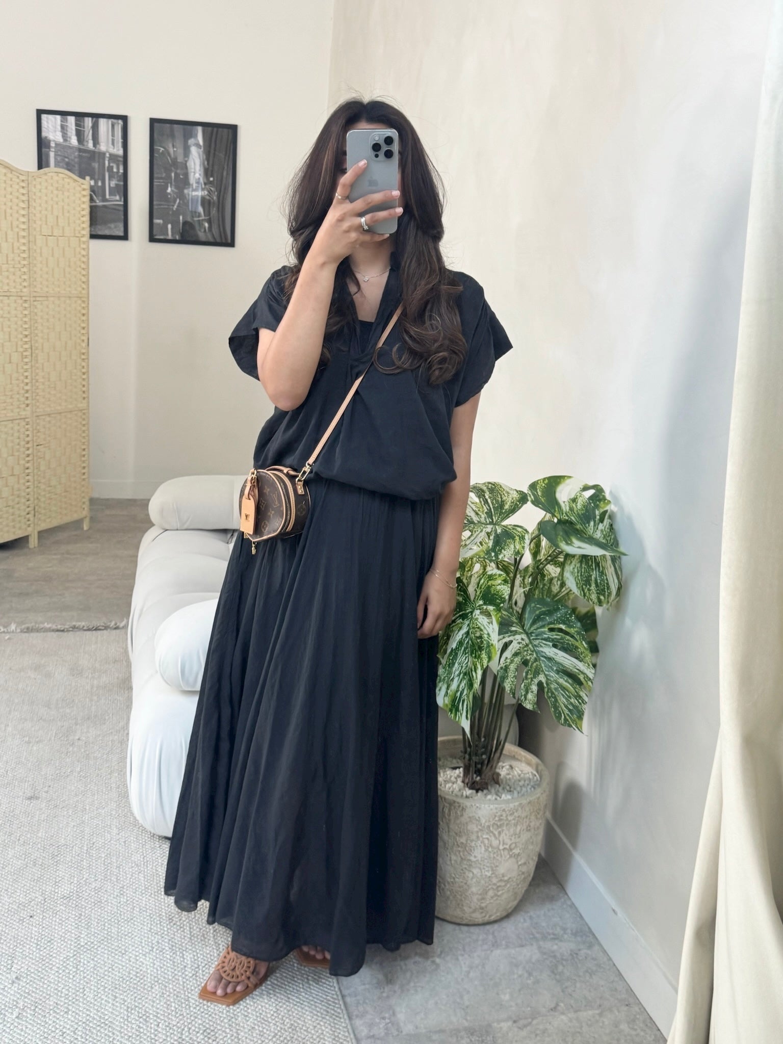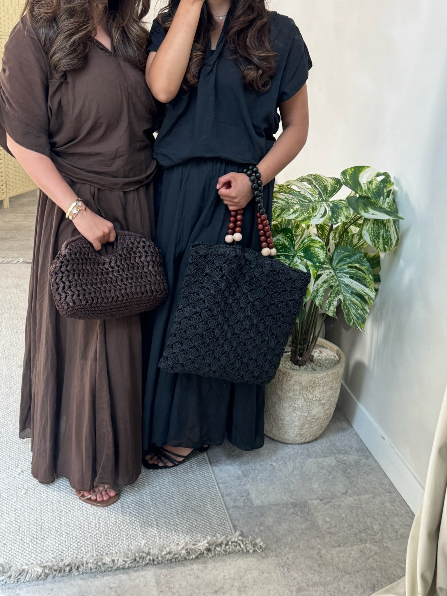 This beautiful holiday-ready coord set features a breezy V-neck top and a flattering skirt with a just-above-the-knee lining. Light and stylish, it's perfect for summer days—slip required for the top.