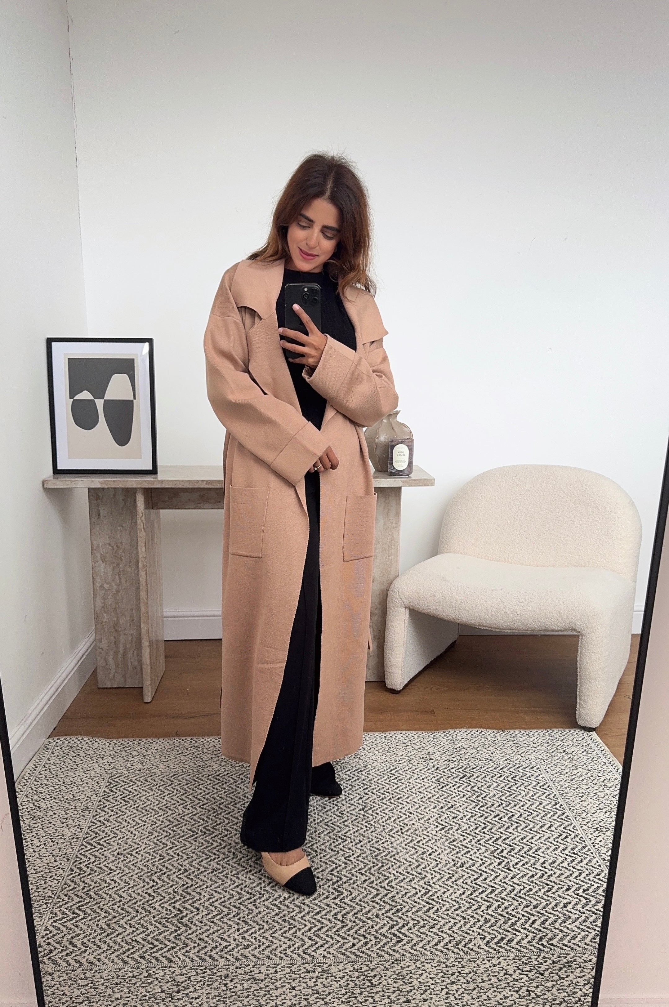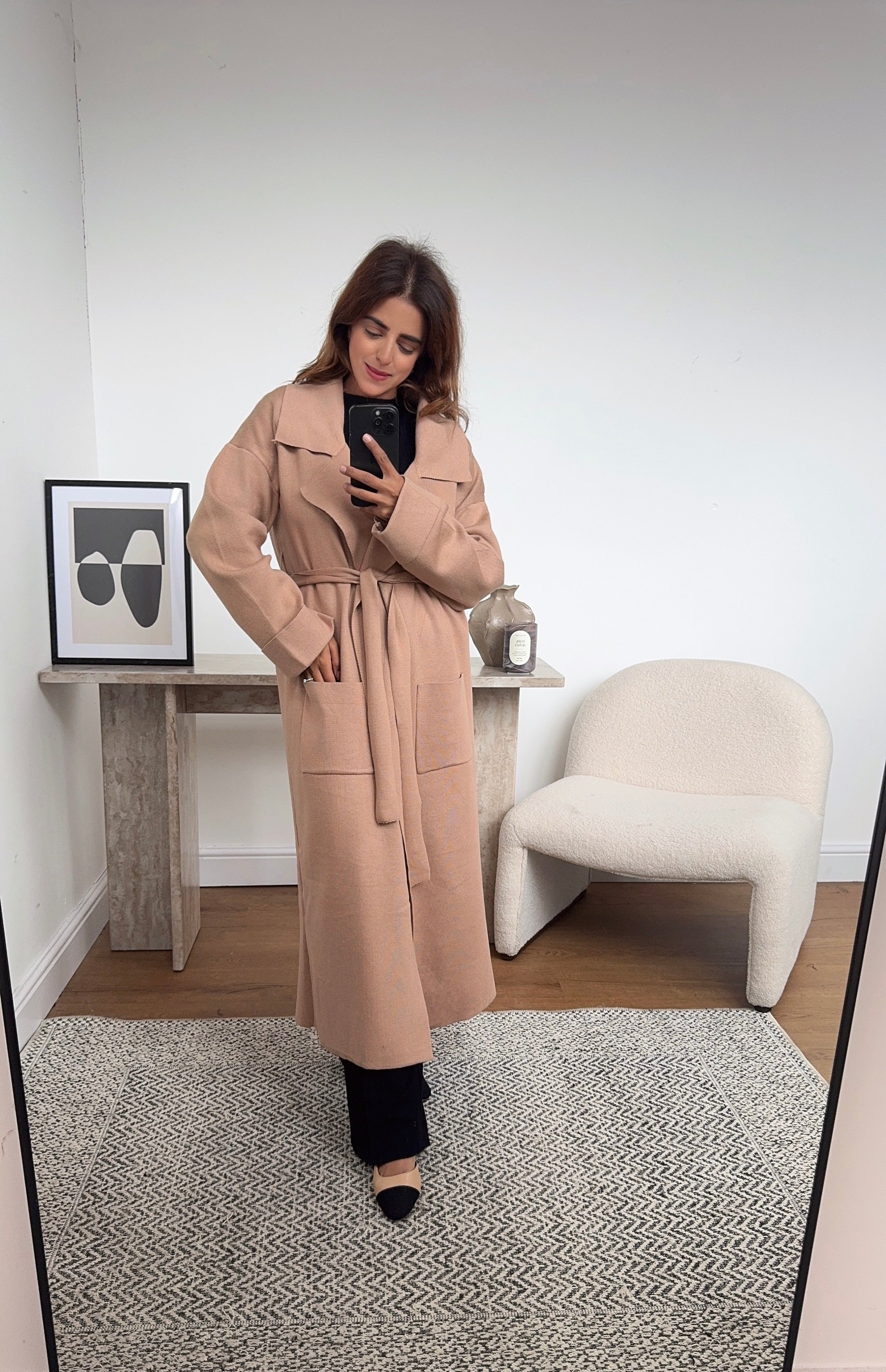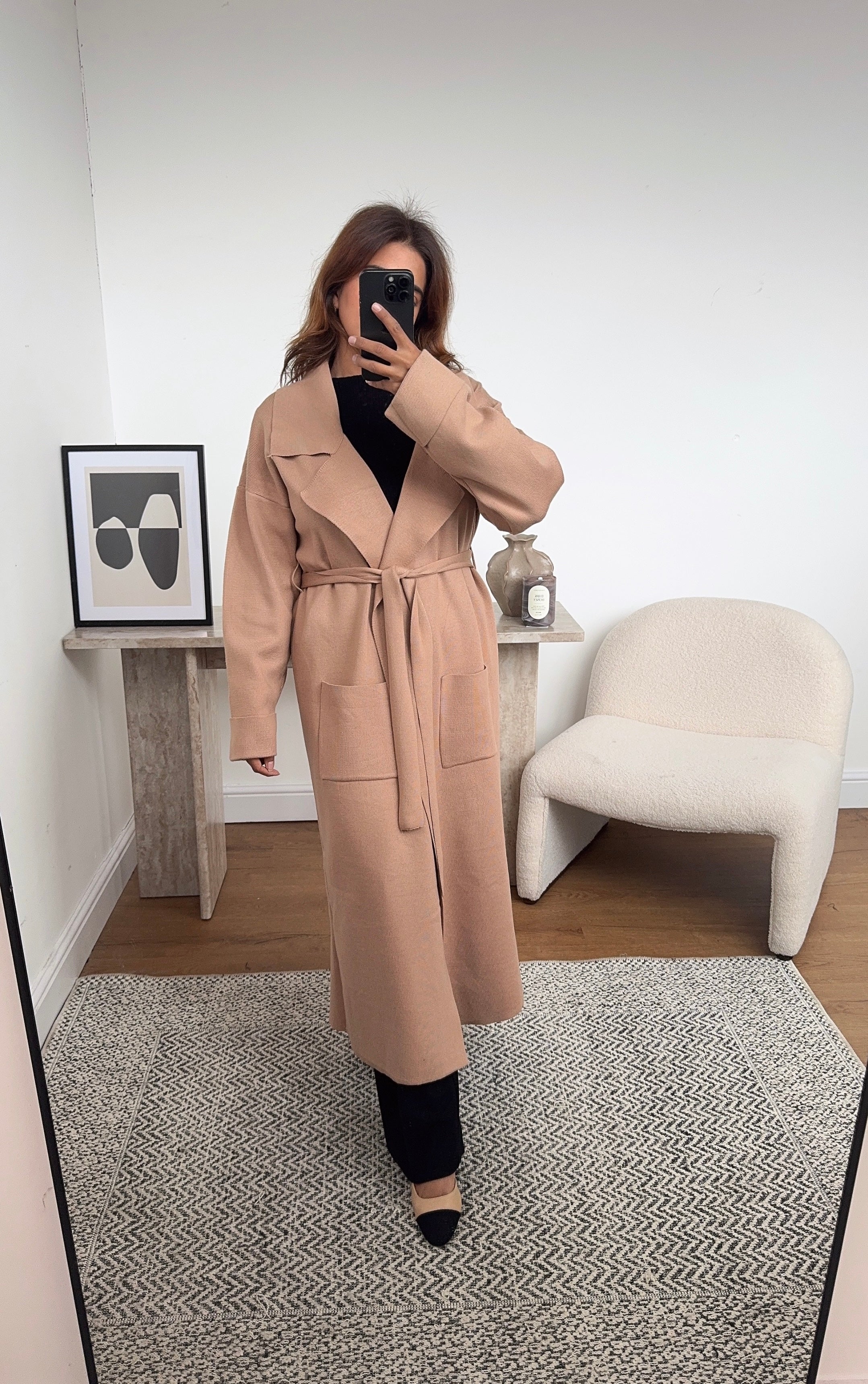 Camel Long cardigan with a belt - Mariana