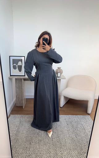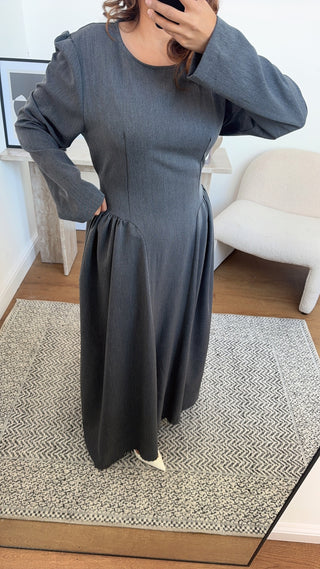 navy long flare sleeve fishtail dress- dion - Fash Focused