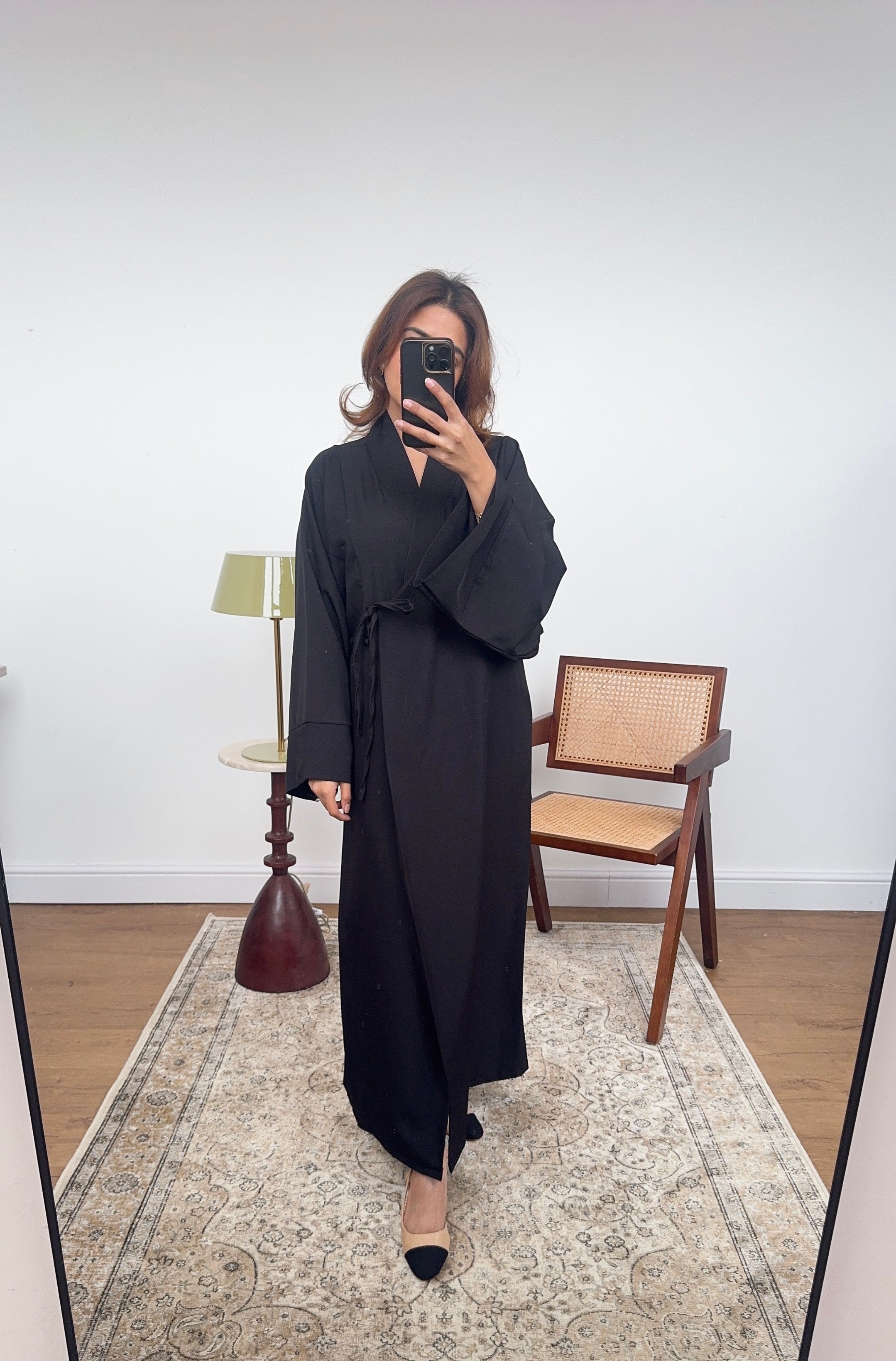 Lightweight long blazer with a collar and button closure, offering a sleek and effortless look.