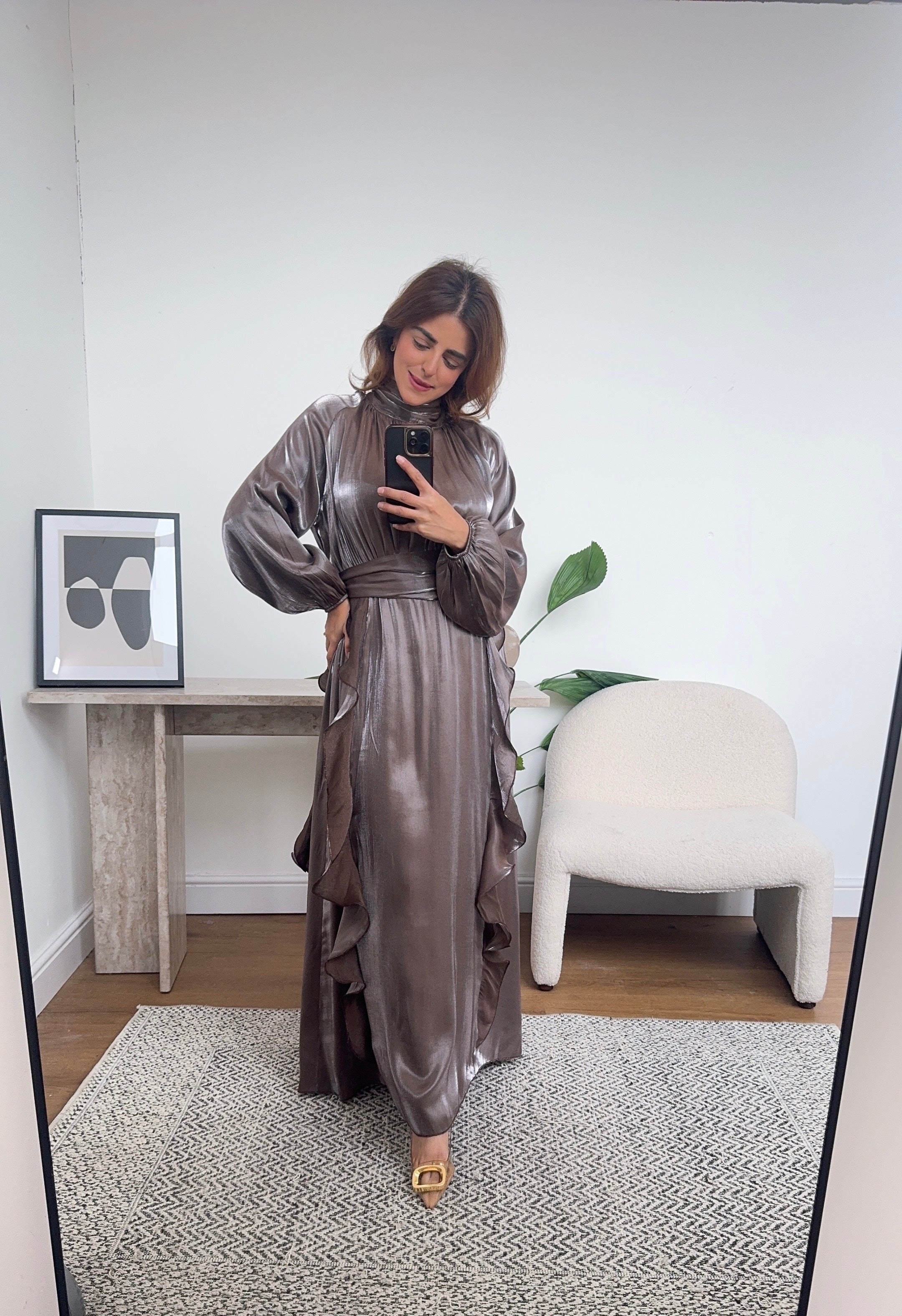 Taupe high neck long dress- aurelia