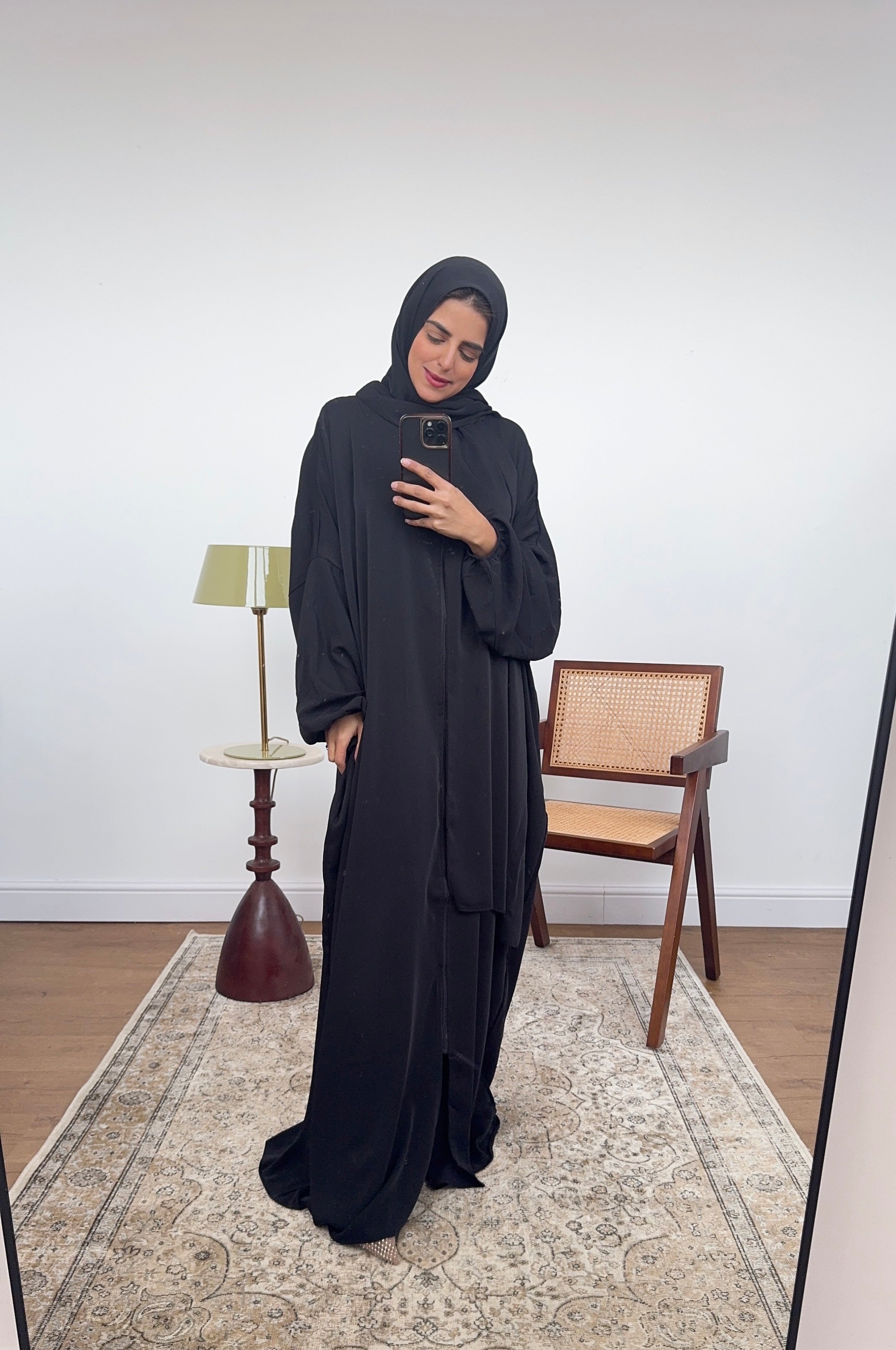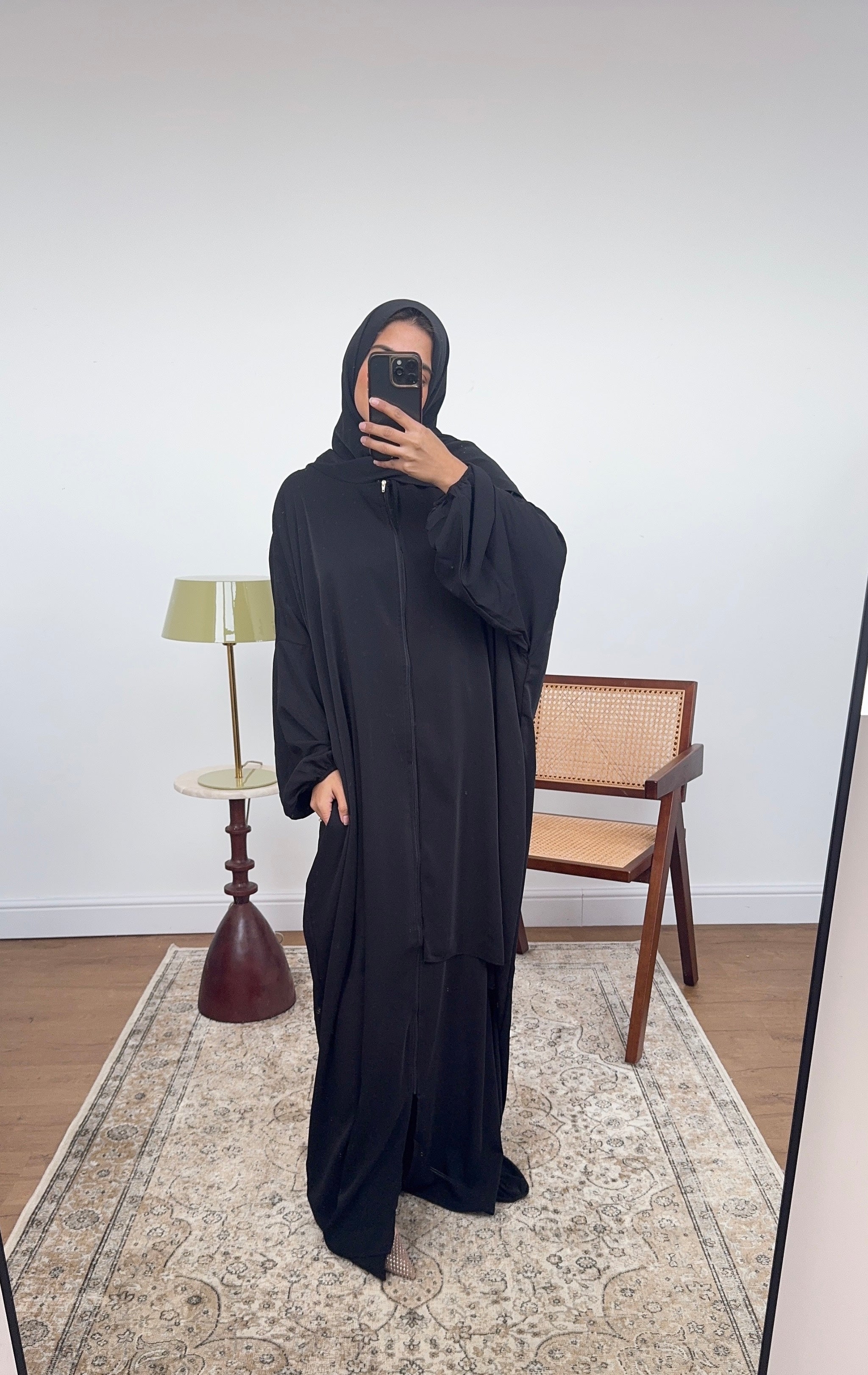 A complete Ramadan must have! Super cool Abaya with a hooded scarf attached, zipper down the middle making it perfect for breastfeeding mamas too! Also has pockets.