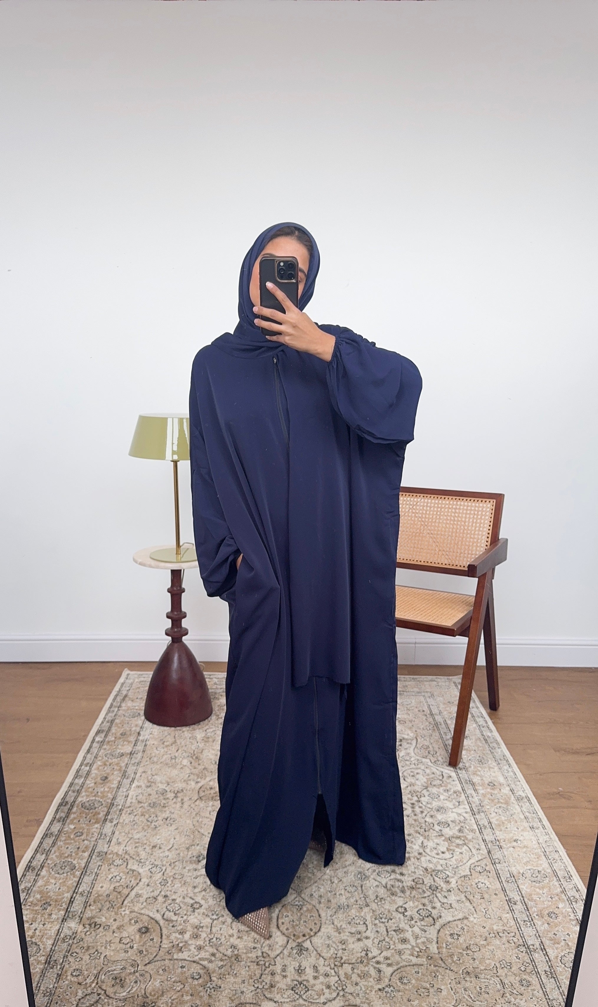 A complete Ramadan must have! Super cool Abaya with a hooded scarf attached, zipper down the middle making it perfect for breastfeeding mamas too! Also has pockets.