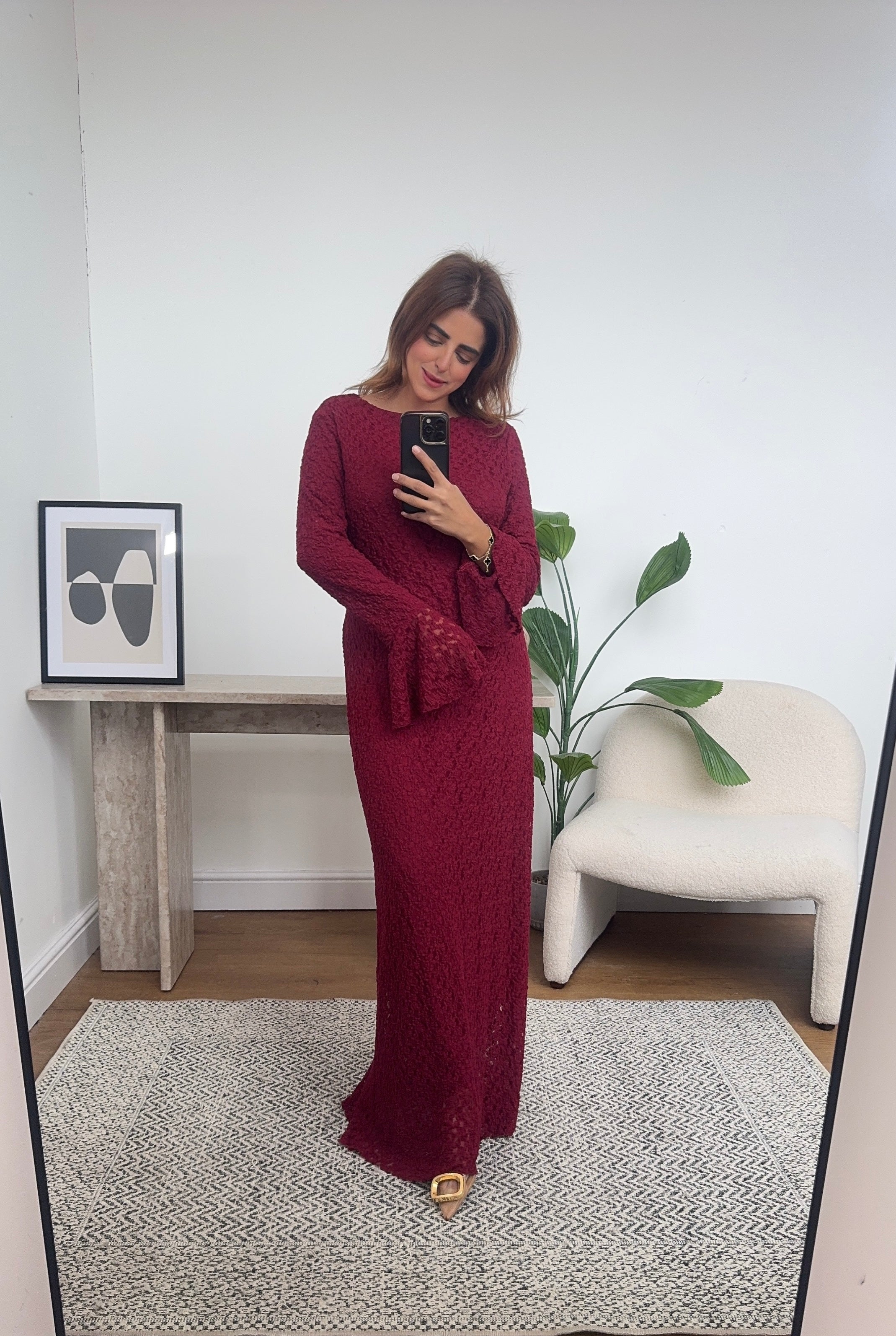 Beautiful fully lined lace dress with back tie belt for fitting.