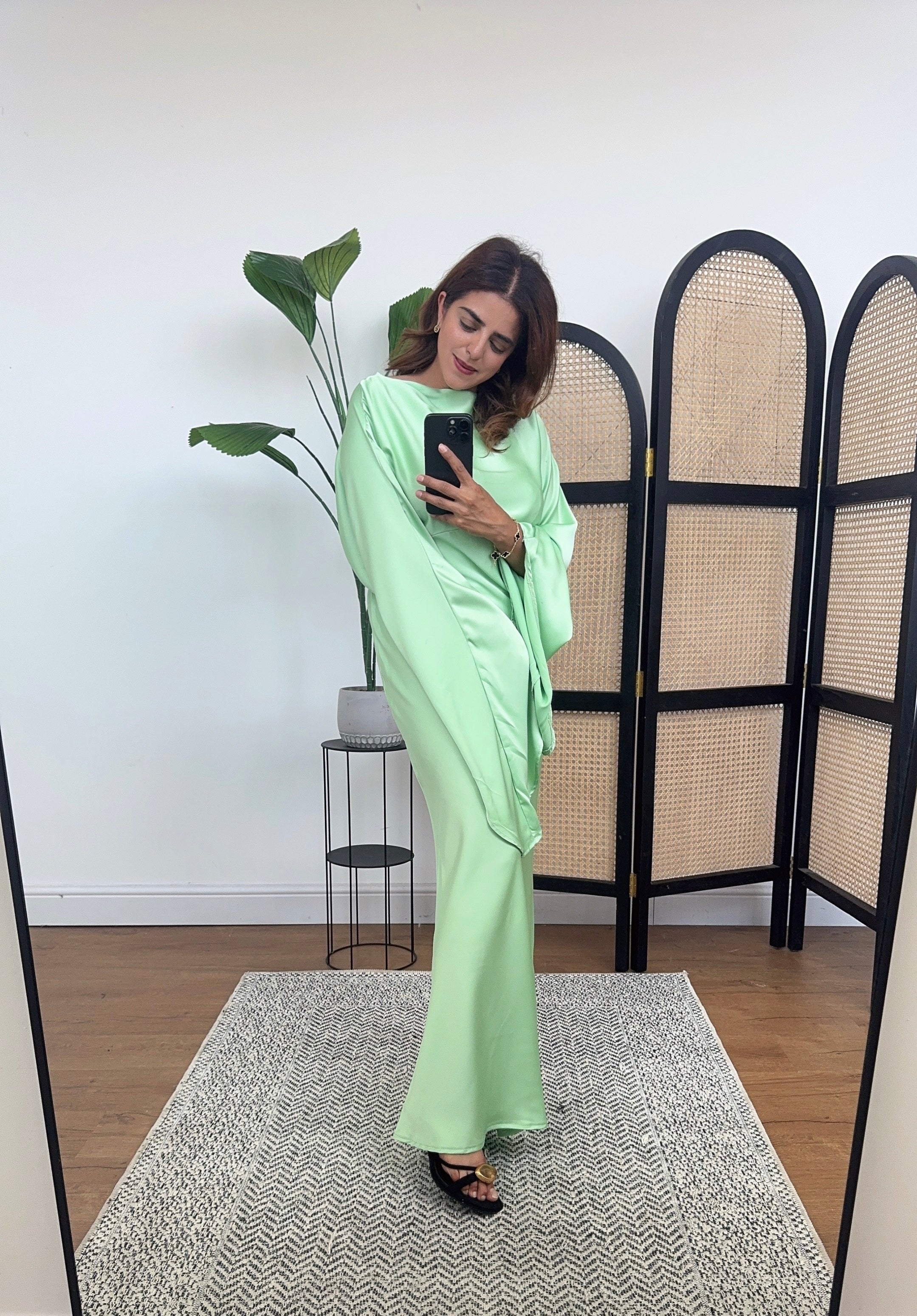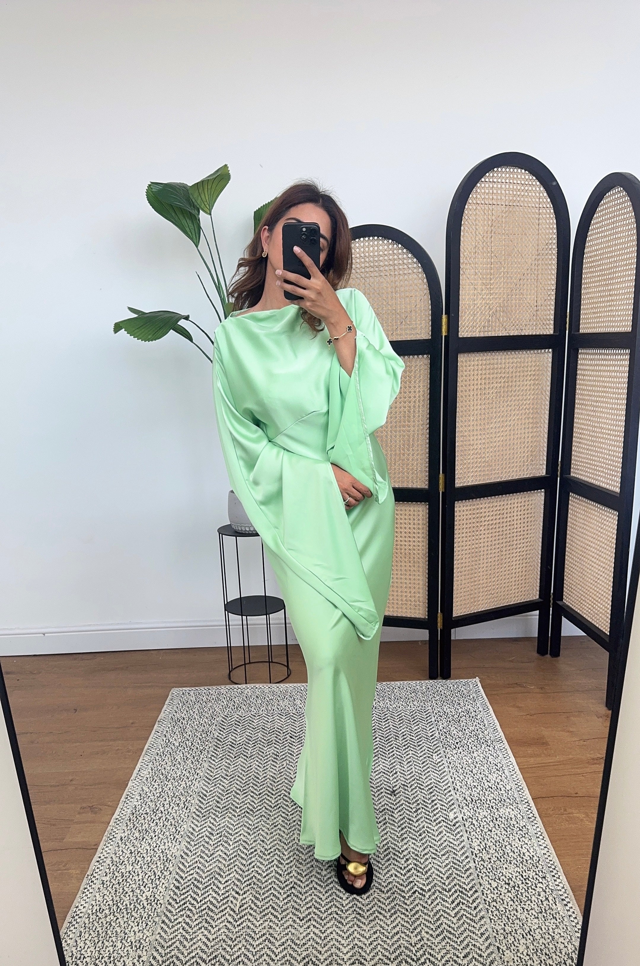Beautiful long flare sleeve dress with a belt for fitting. Perfect for your upcoming ocasions.