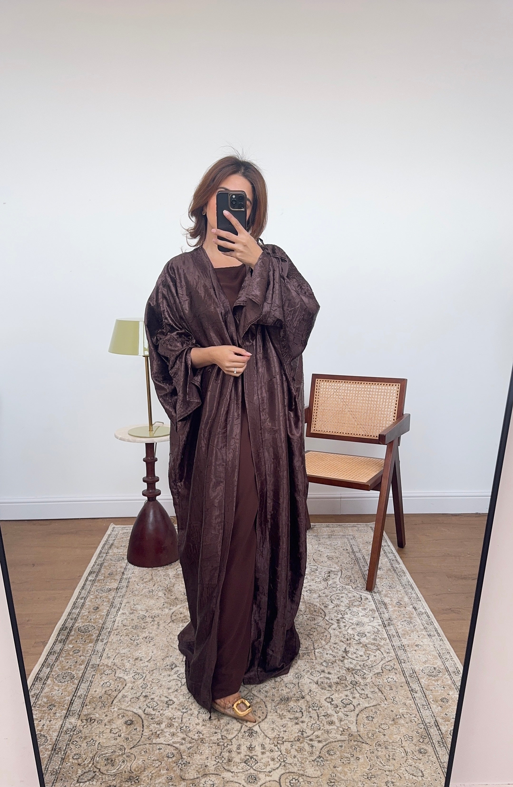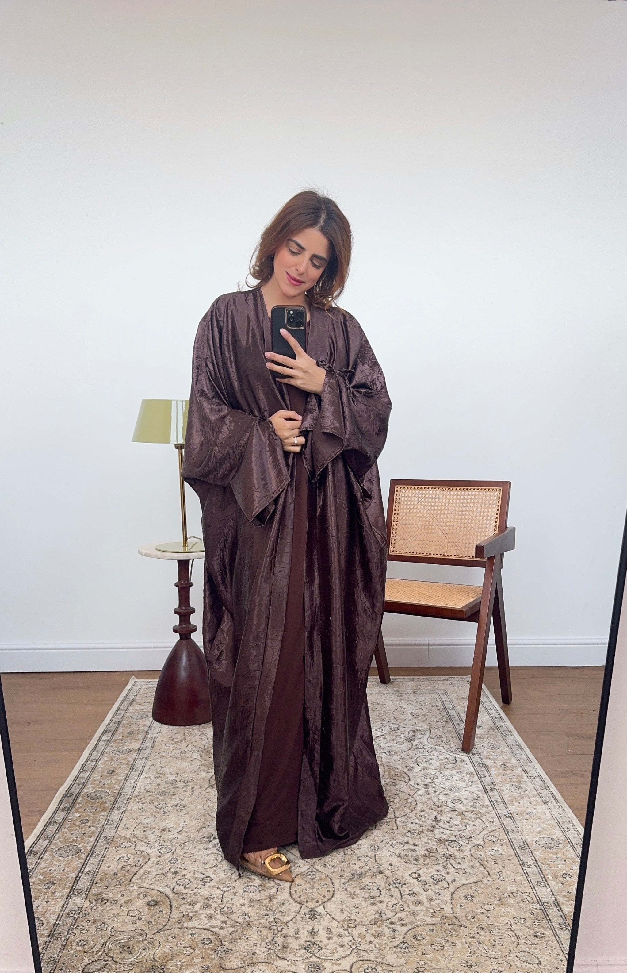 Beautiful two piece featuring a long kimono with a sleeveless dress inside.