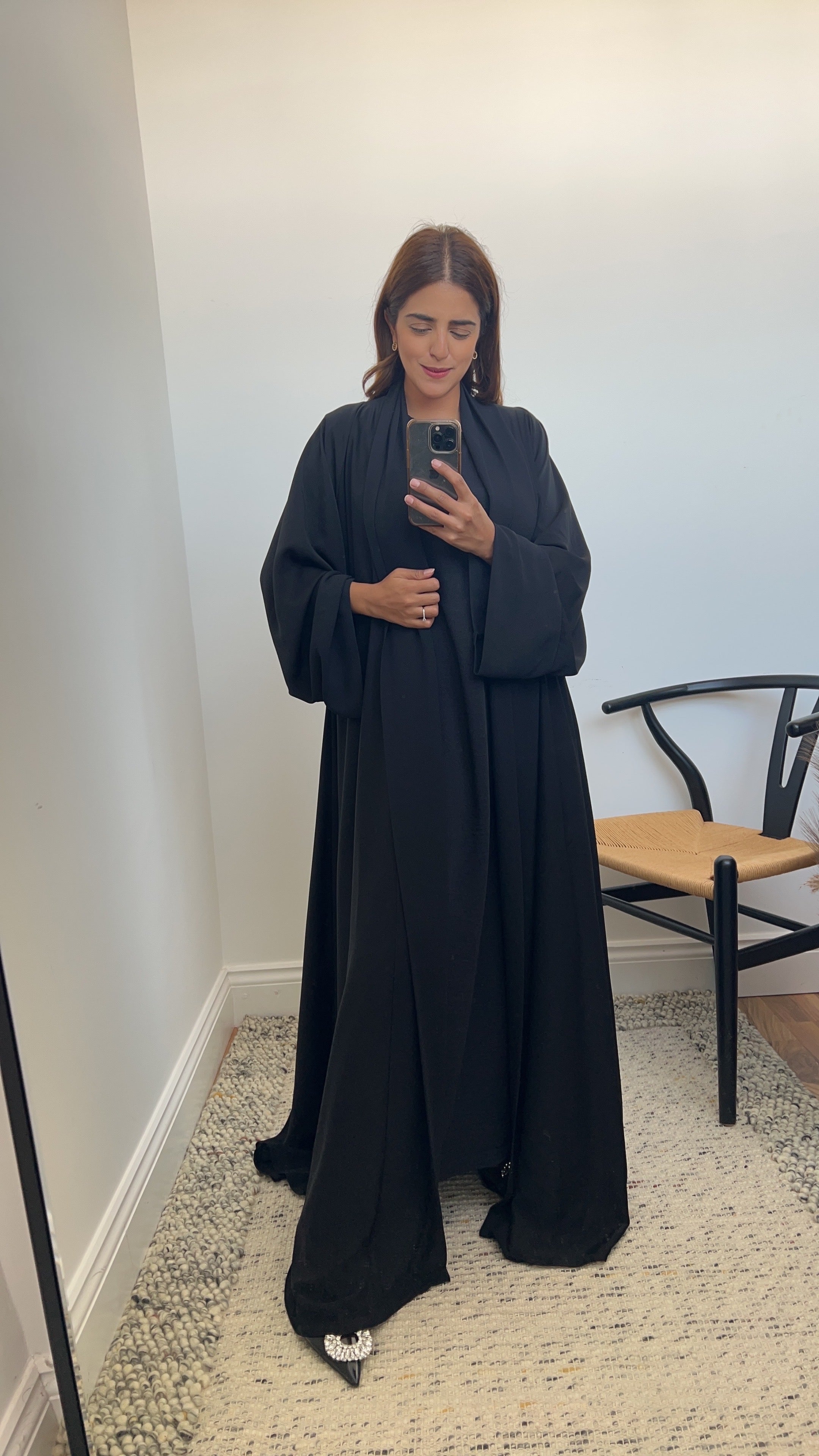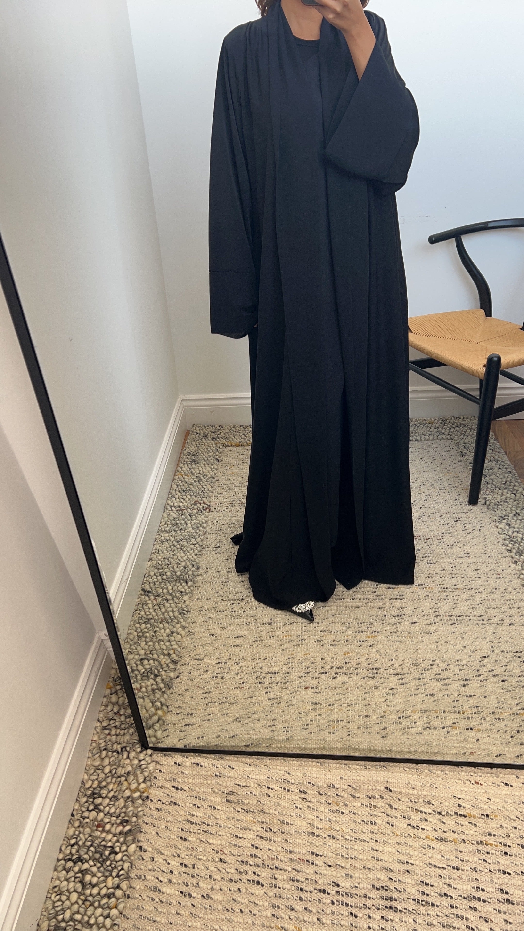 Beautiful open abaya with contrast fabric, wear with our basic slip dress which is sold separately.
