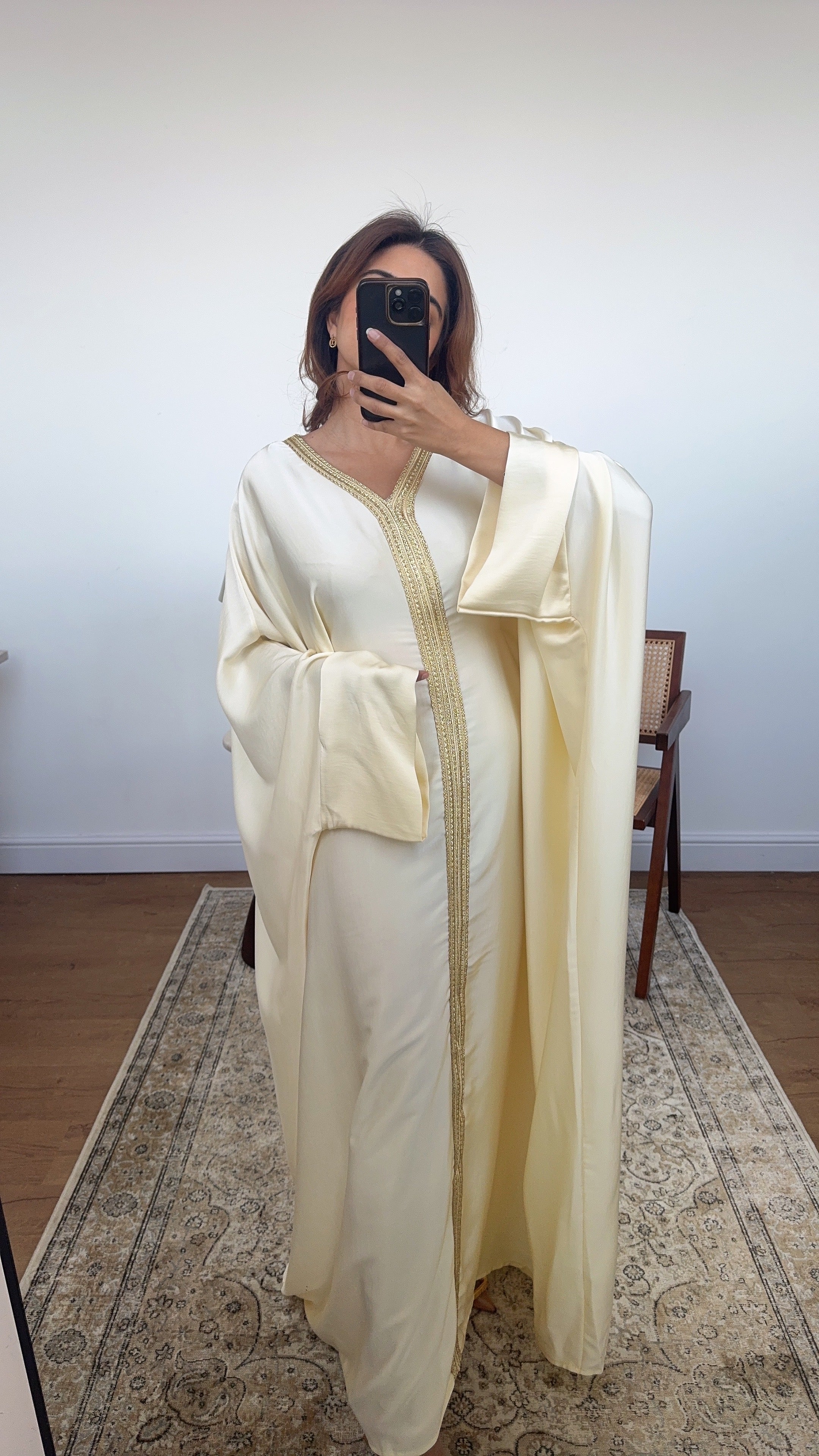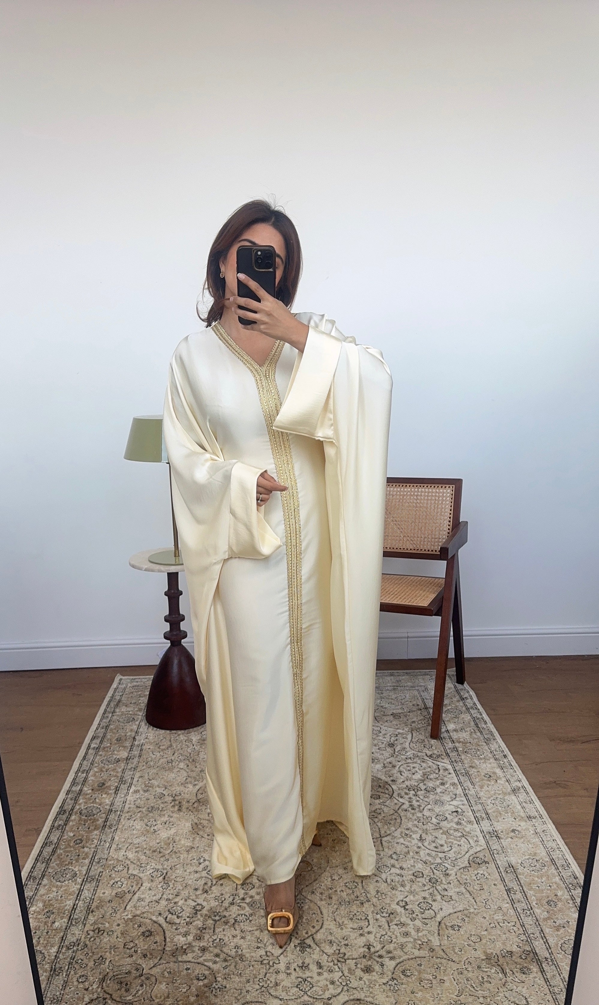 Ivory butterfly kaftan with gold detail- fria