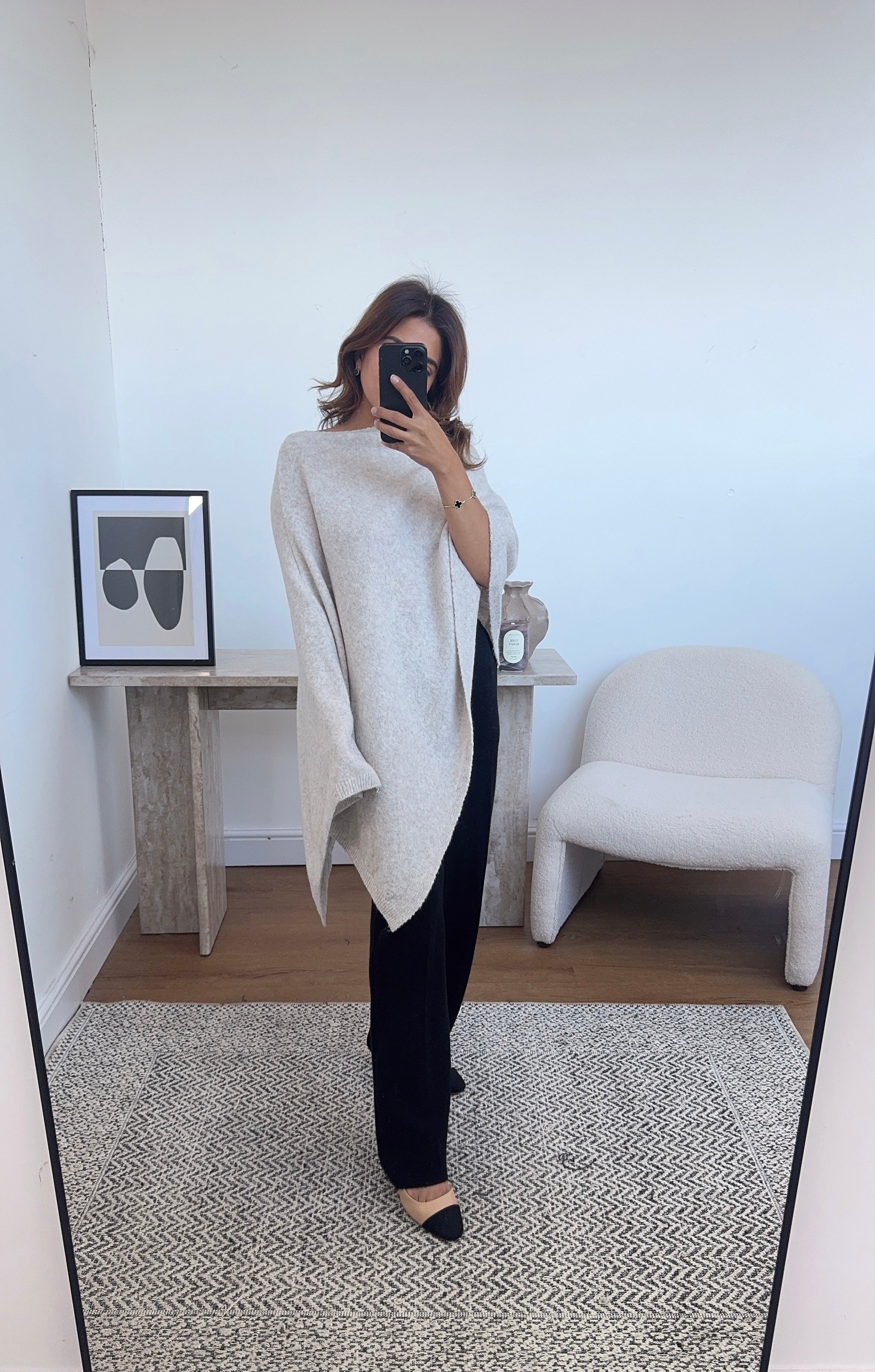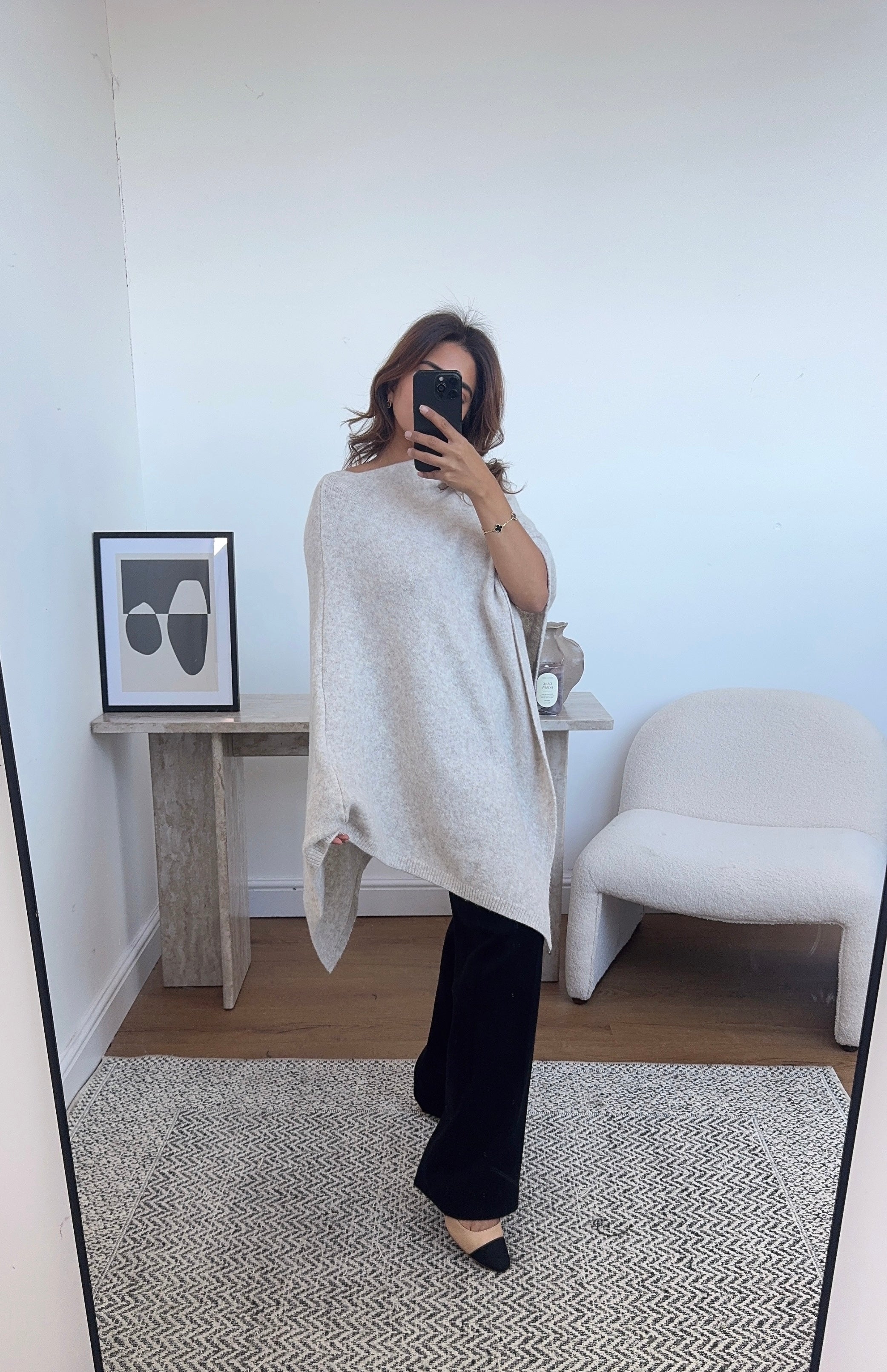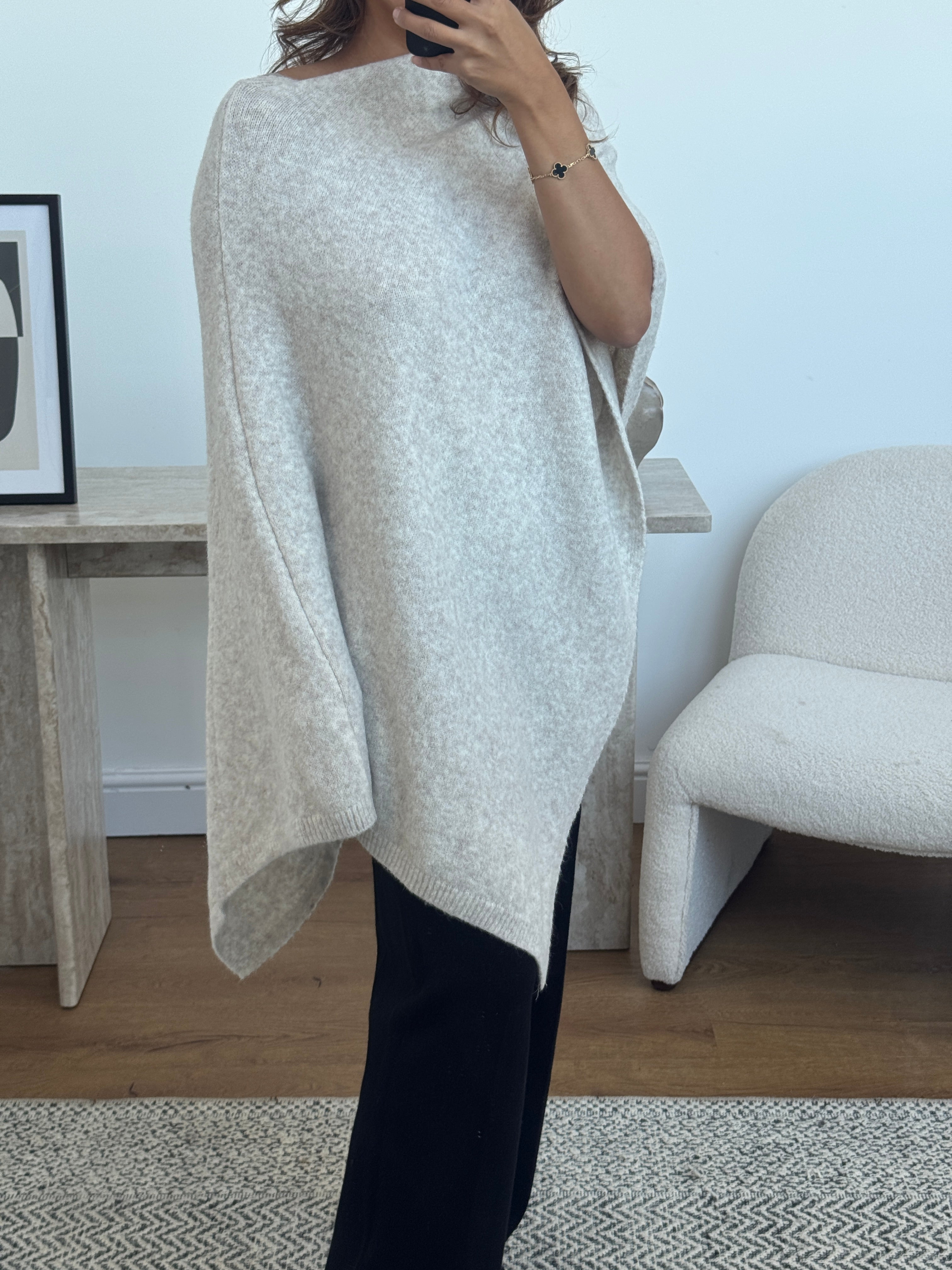 Effortless layering meets timeless elegance in this Asymmetrical Knit Poncho. Designed with a fluid drape and one-shoulder silhouette, it brings a touch of sophistication to any outfit. Perfect for pairing with fitted tops or knit trousers, it's a versatile statement piece that blends comfort with contemporary style.