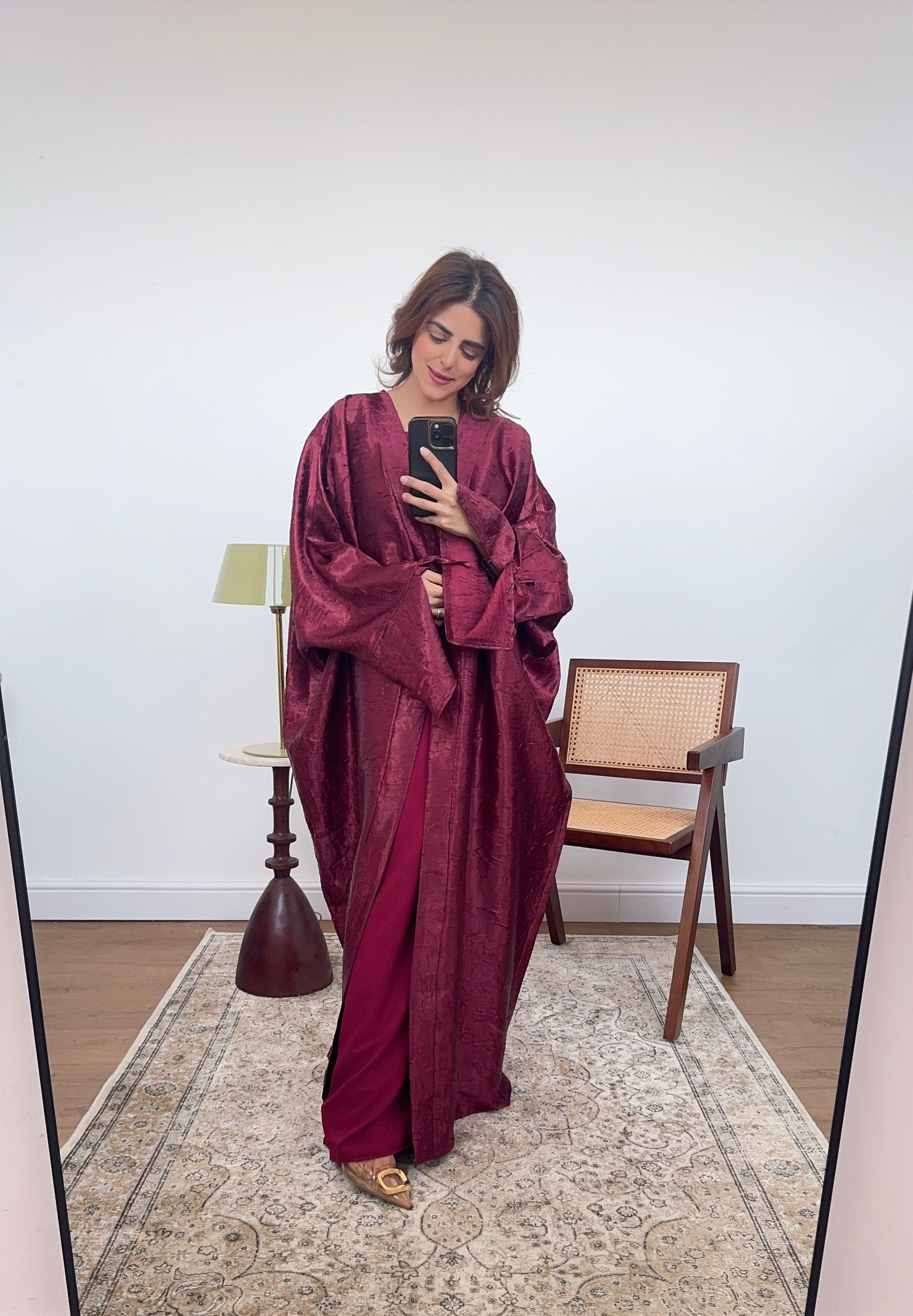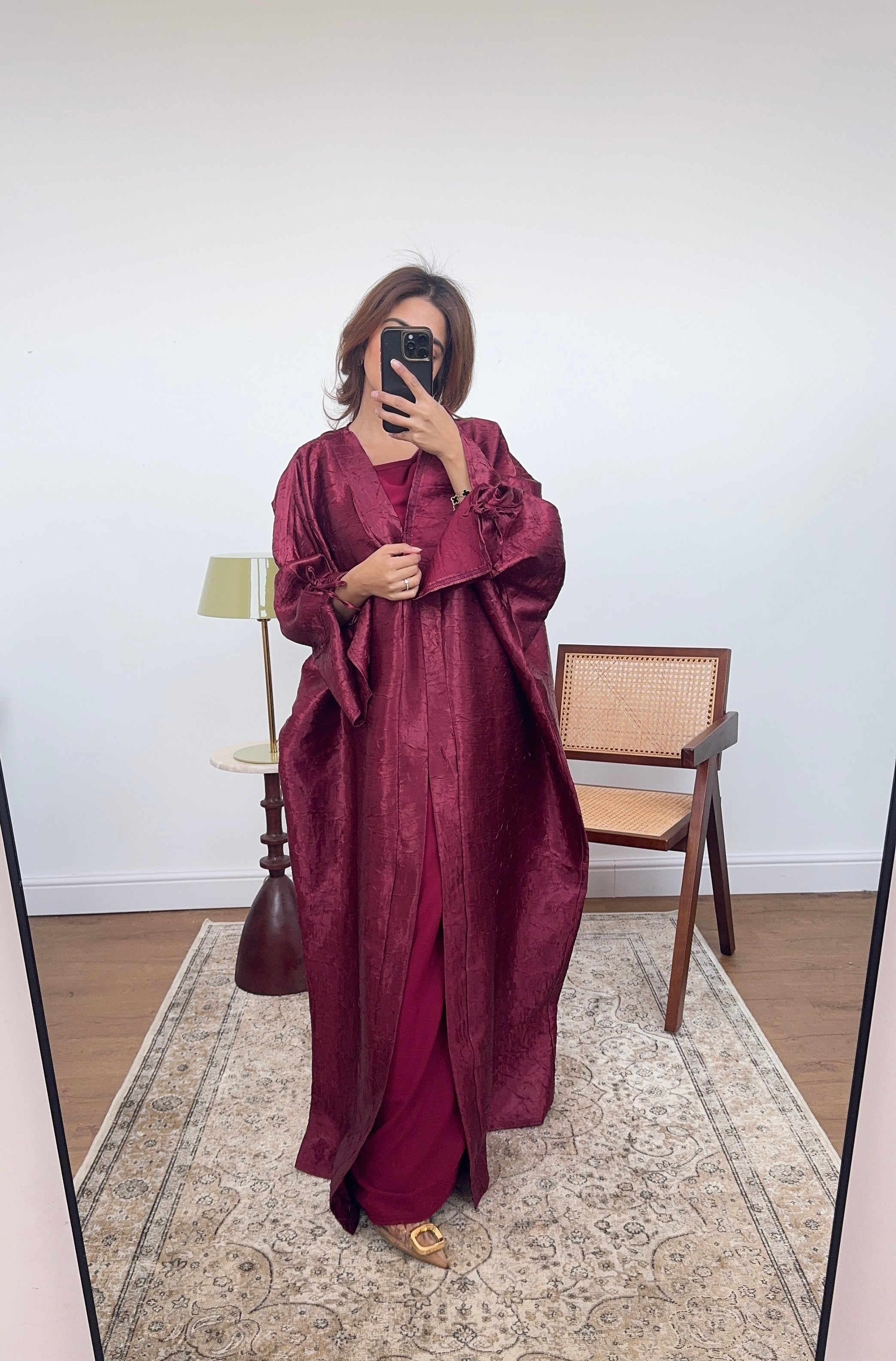 Beautiful two piece featuring a long kimono with a sleeveless dress inside.