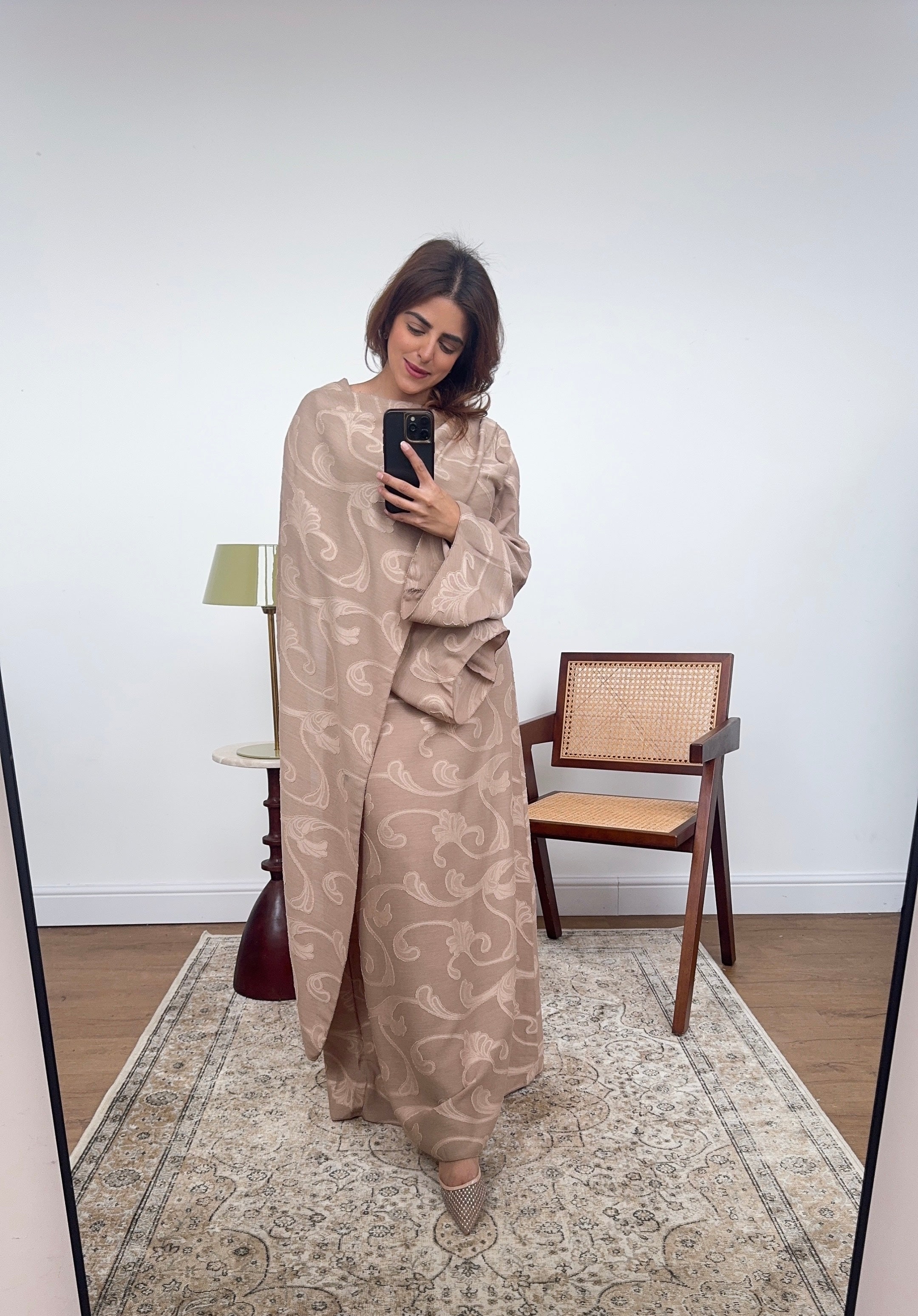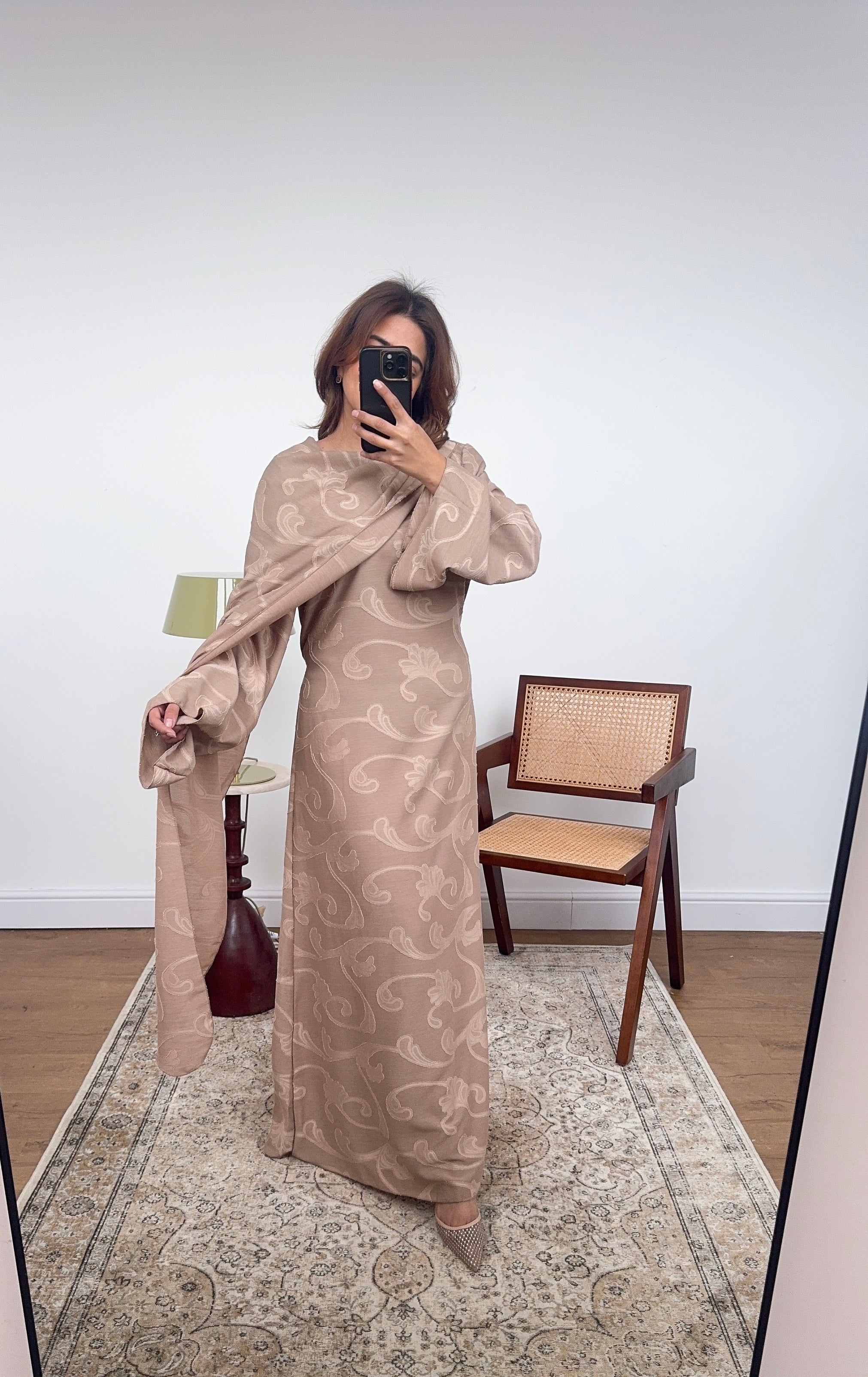 Nude drape scarf printed dress- lana