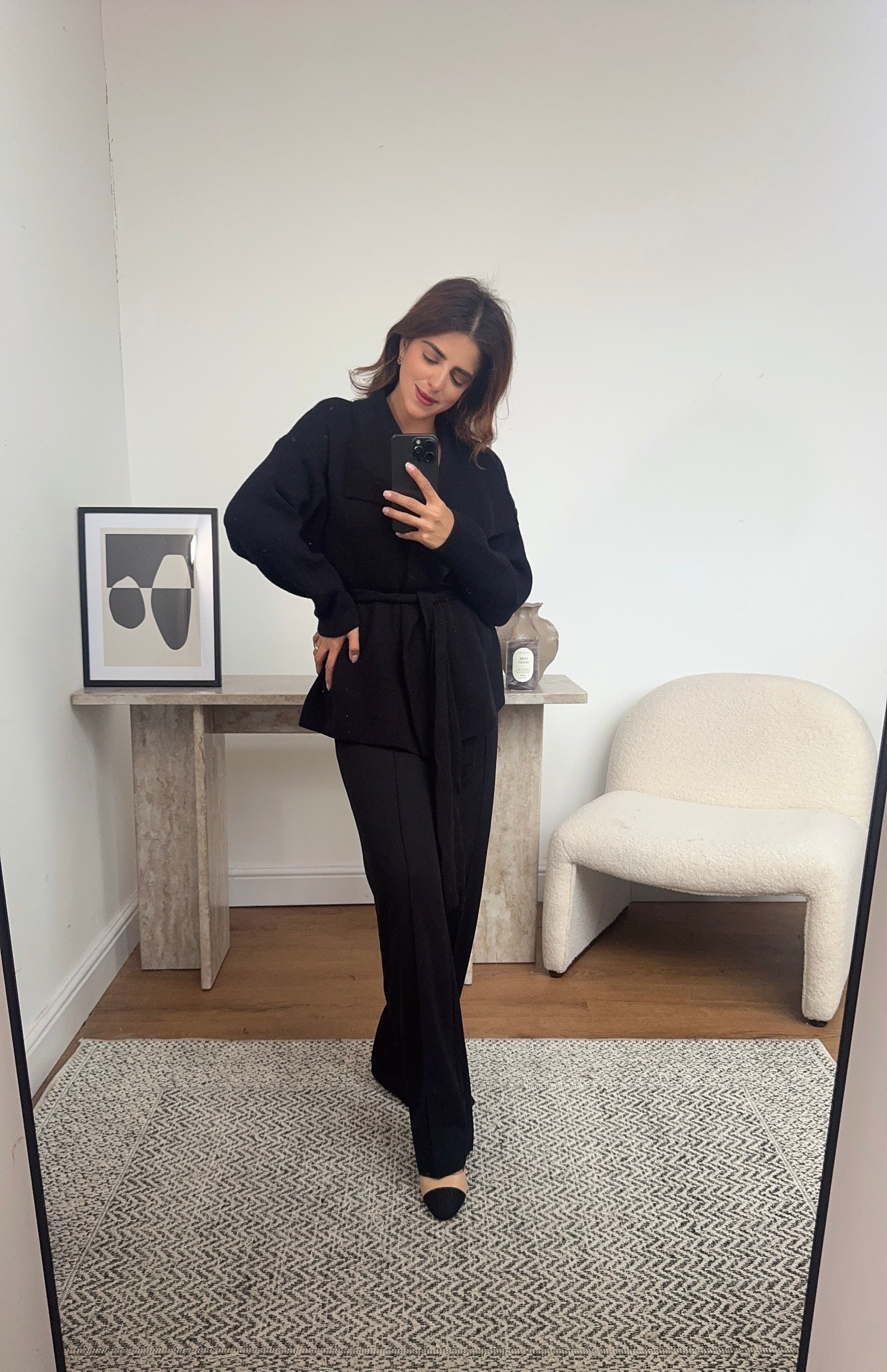 Black shawl collar cardigan with belt- fana