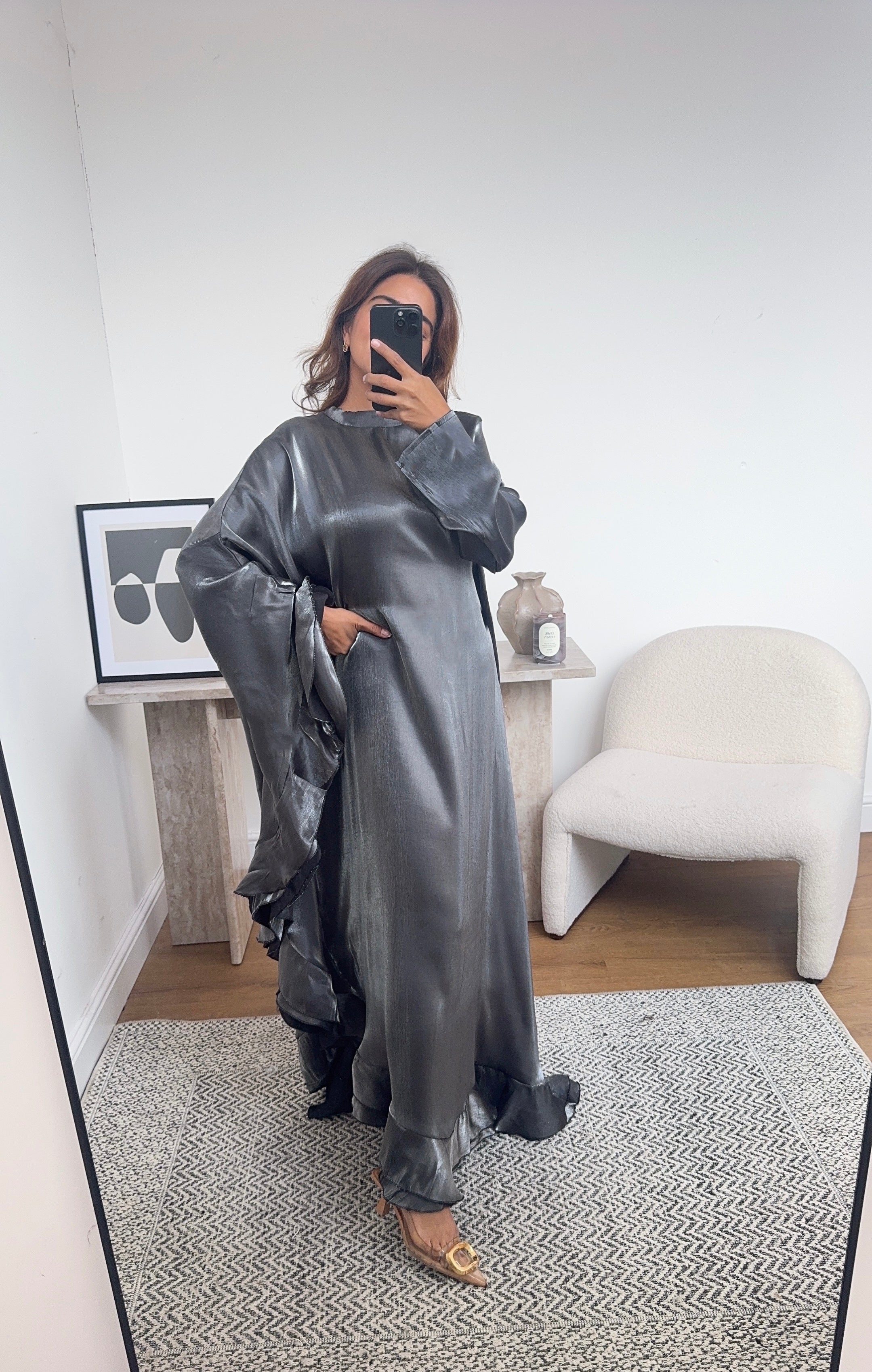 Shimmer kaftan dress in Grey- Karasi