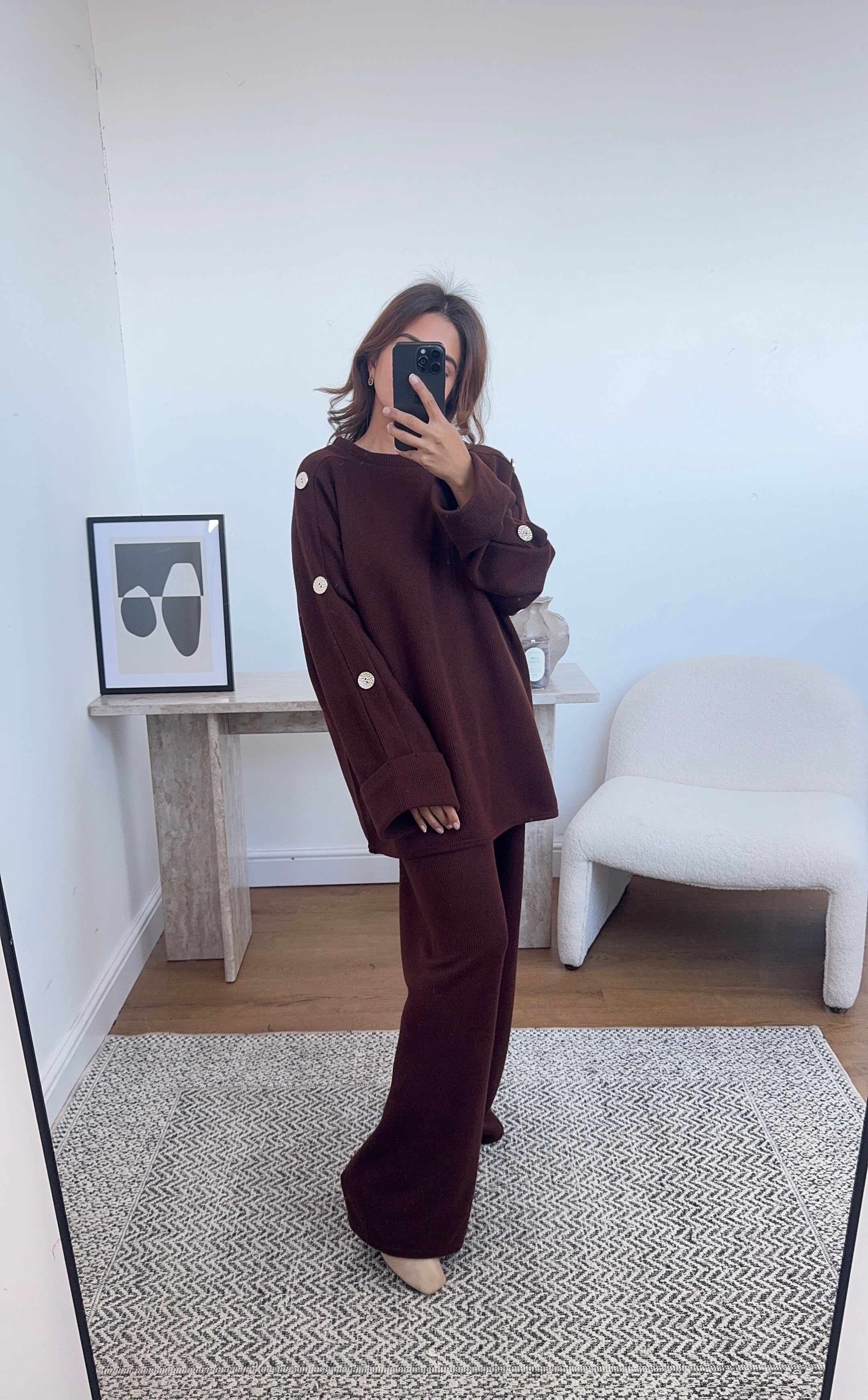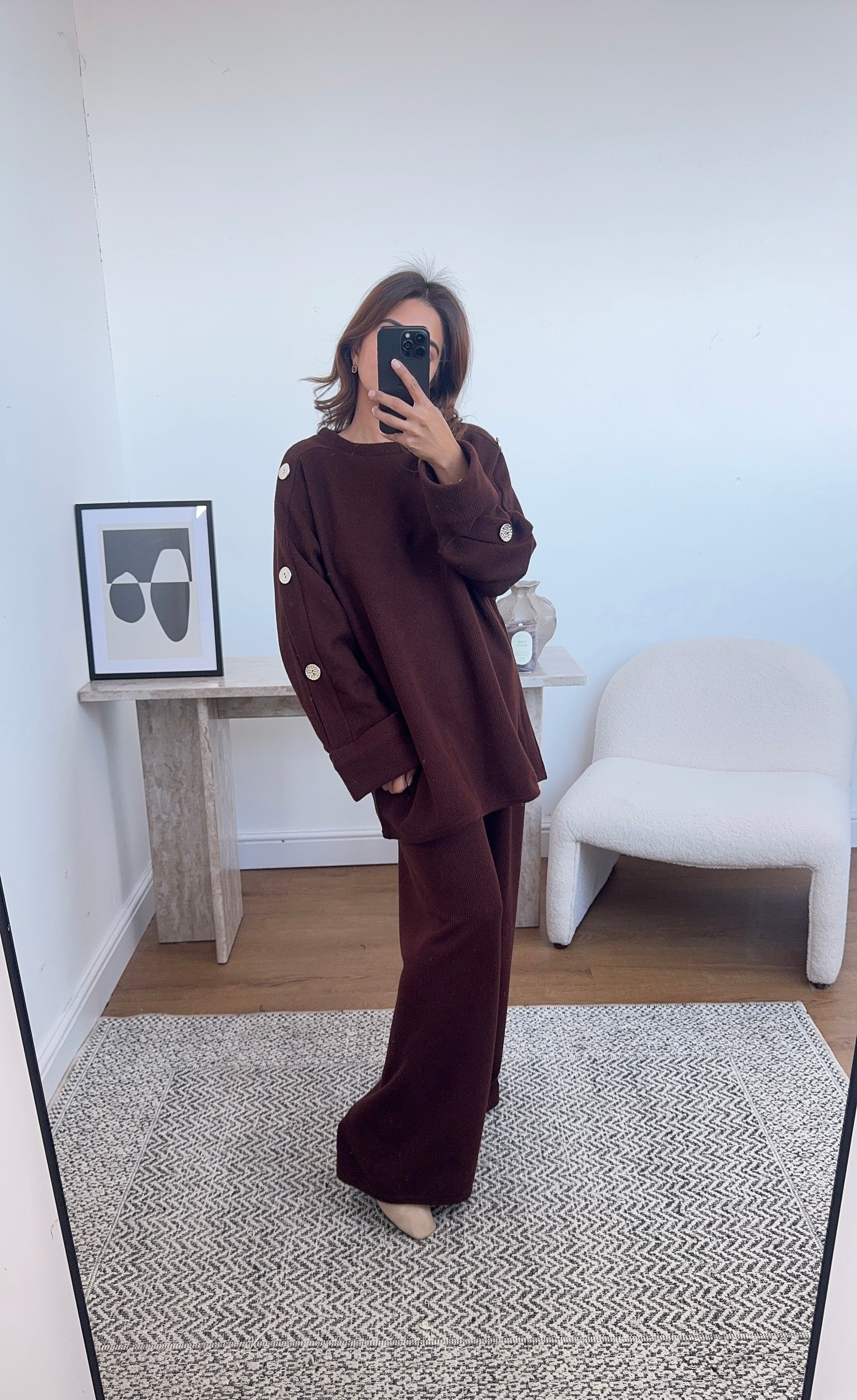 Perfect throw on coord for this season. Trousers are elasticated at the waist.