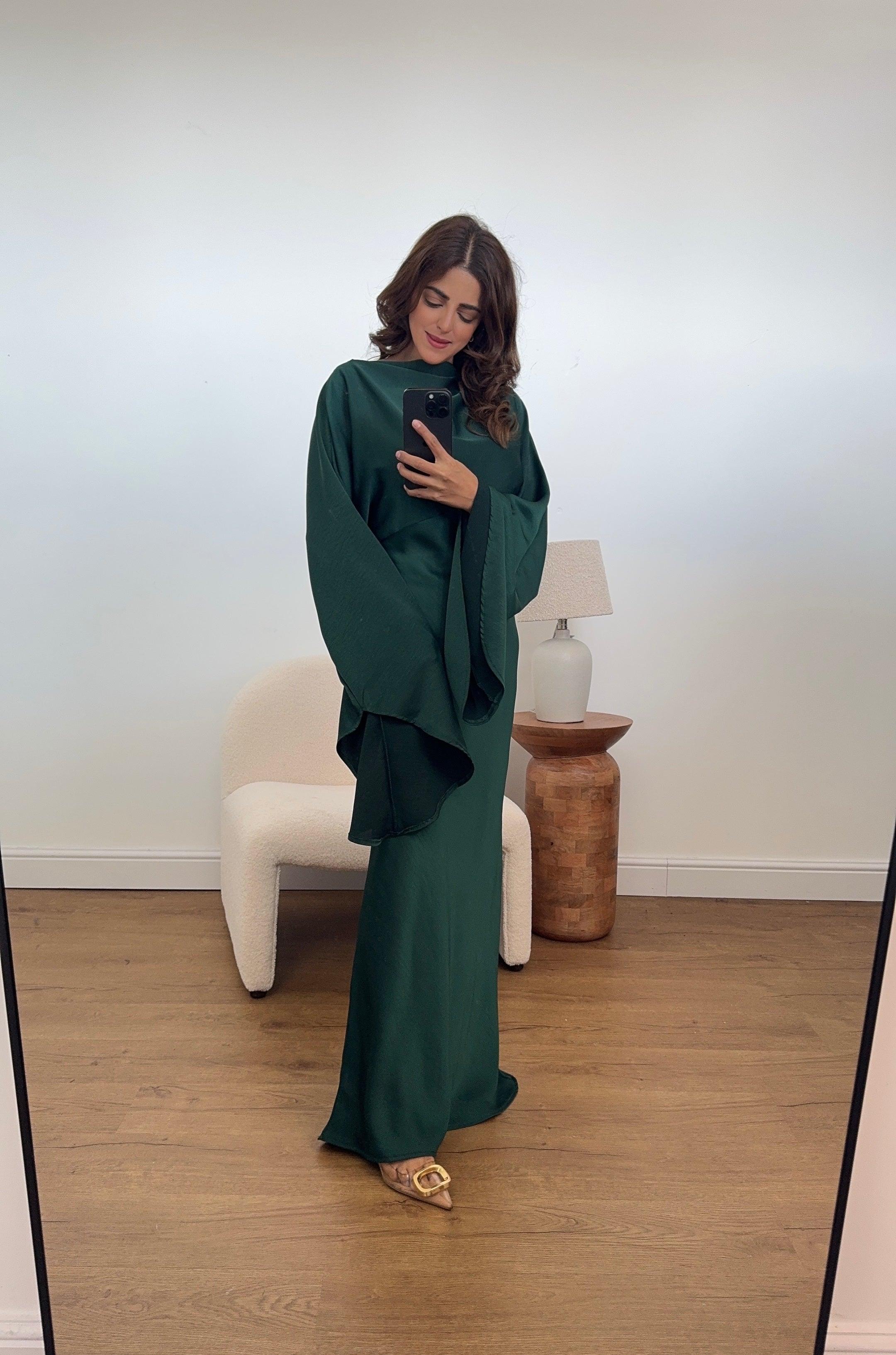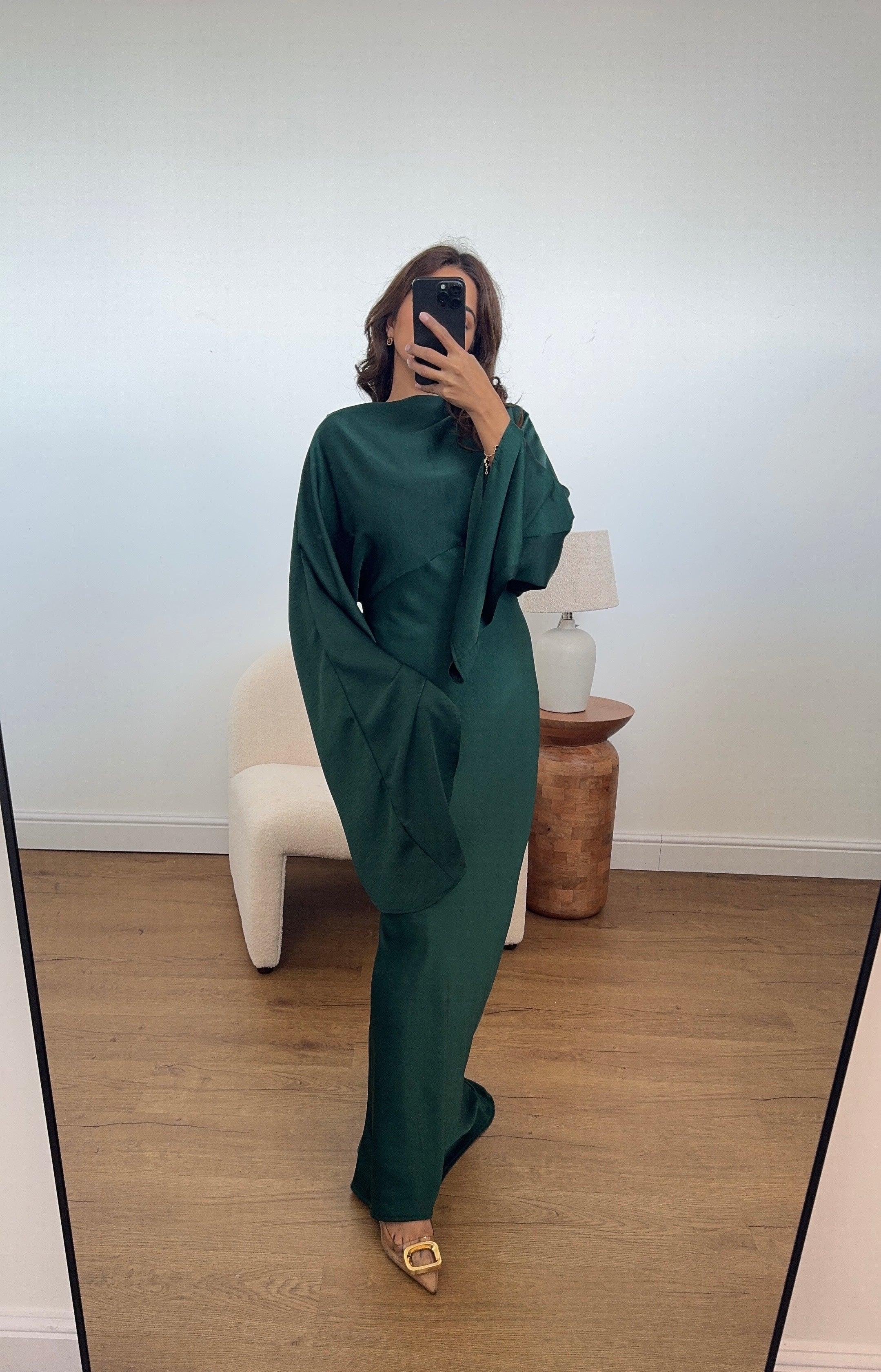 Beautiful long flare sleeve dress with a belt for fitting. Perfect for your upcoming ocasions.