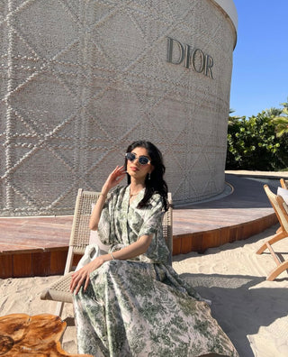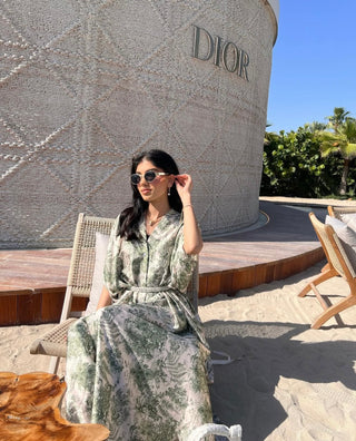 Diya dress printed green (upto plus)