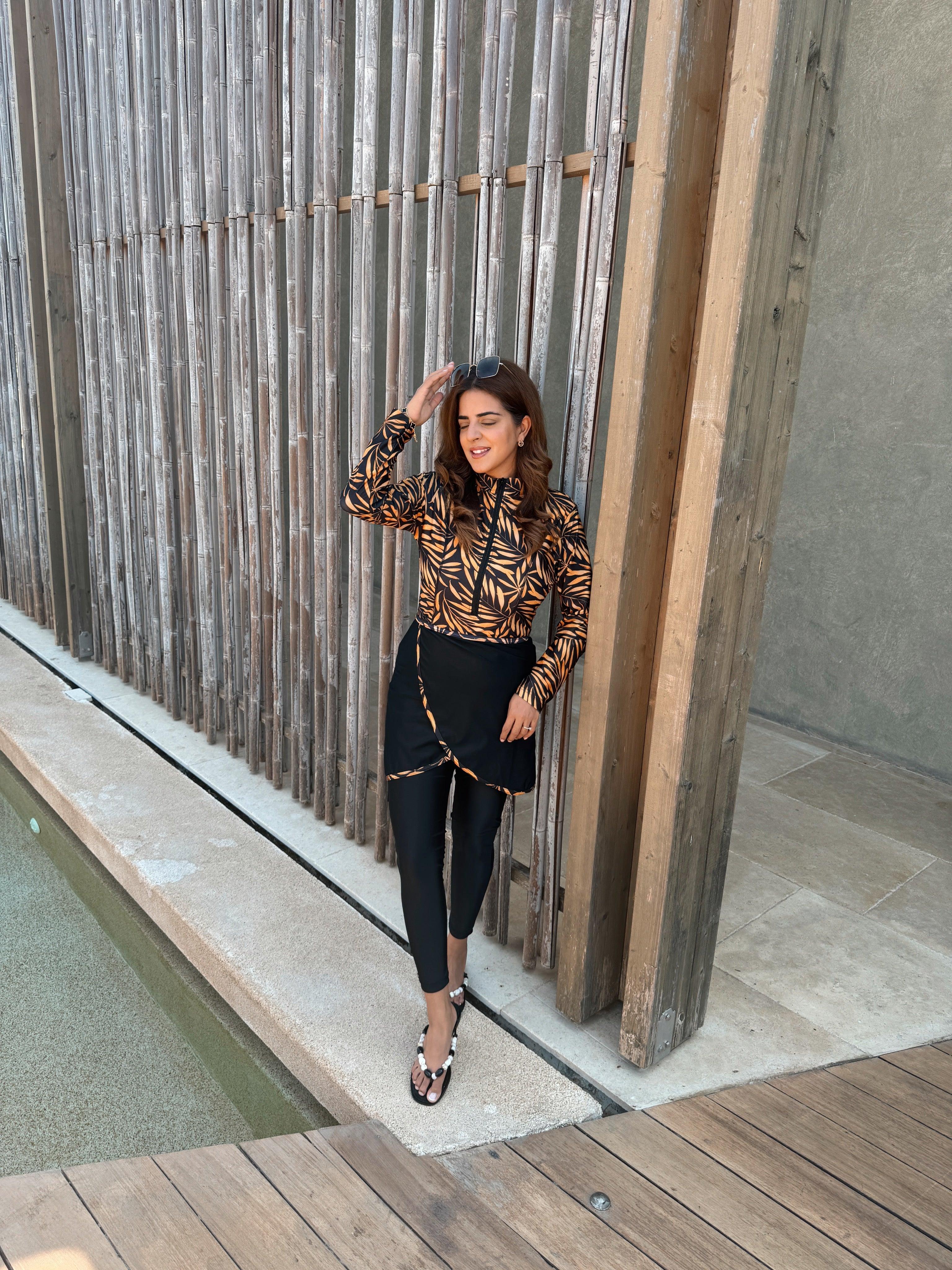 • Featuring a high neck long sleeve printed dress with zip detail ( perfect for breastfeeding mamas)