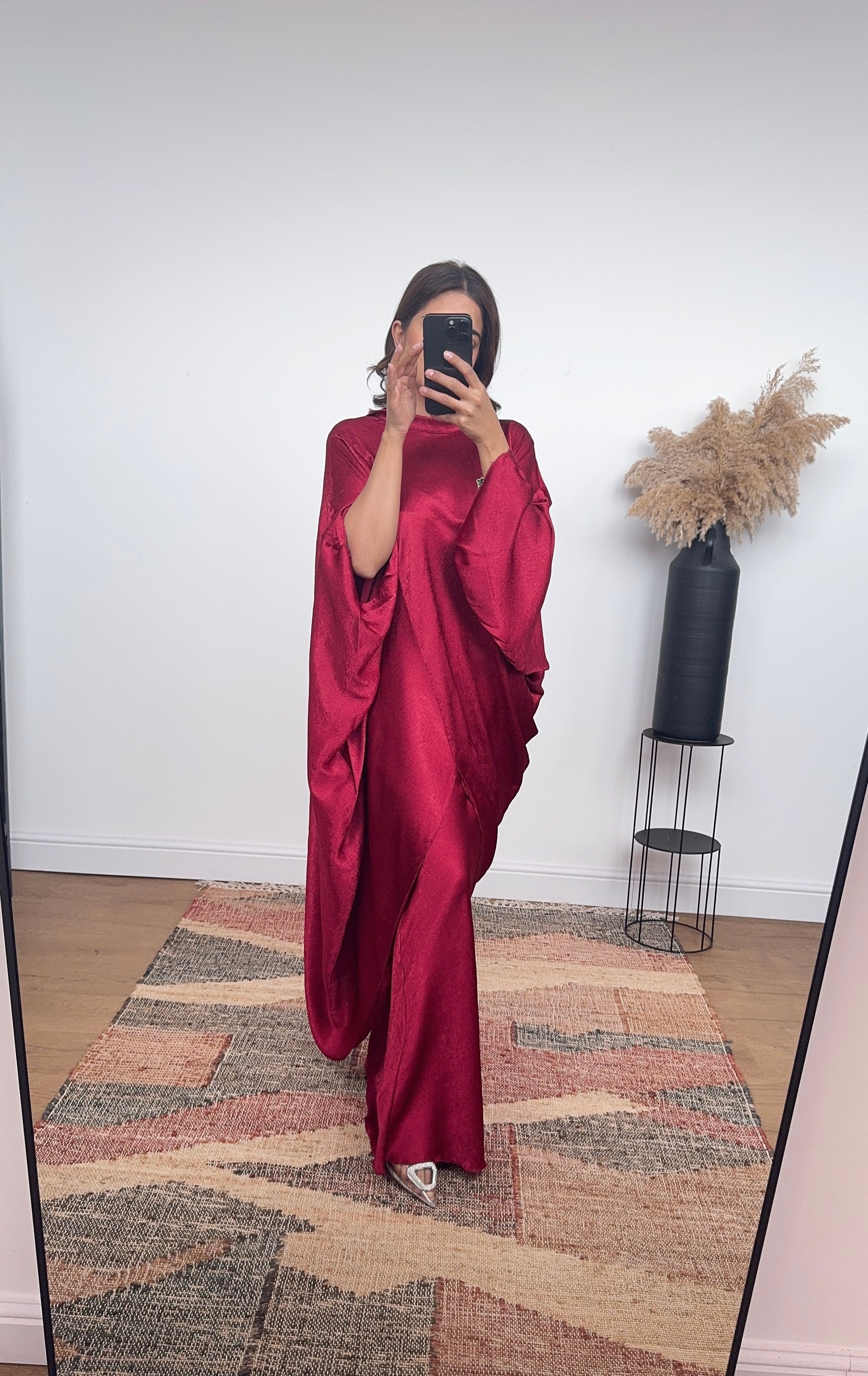 Beautiful sultry crinkle satin coord featuring a high neck top with asymmetric hem & long sleeves. Skirt is elasticated at the waist, perfect if you’re pregnant too